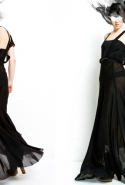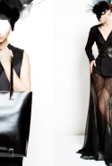 В то же время женственность коллекции придают игра с силуэтами и прозрачные легкие ткани — органза, парча, шелк. Сочетание различных фактур, например, кожаных элементов и органзы, подчеркивают противоречивый характер современной женщины.