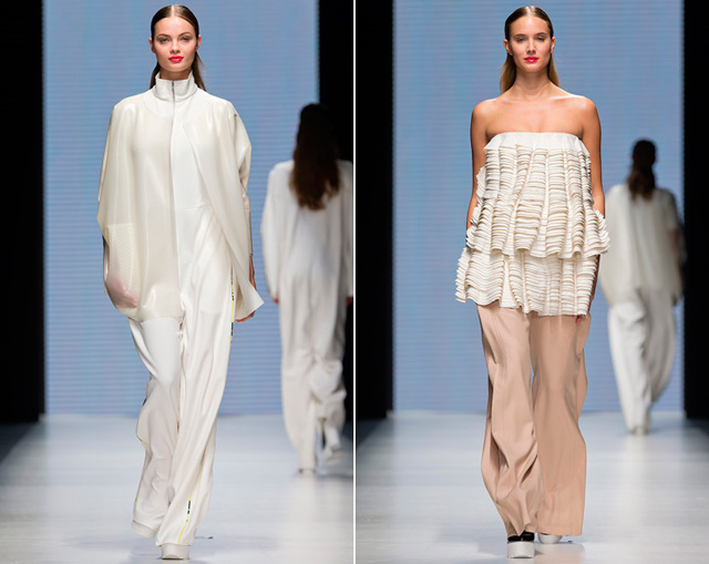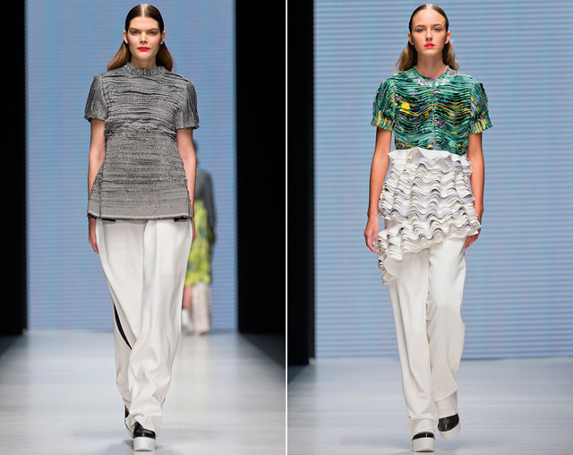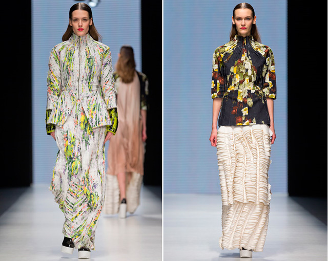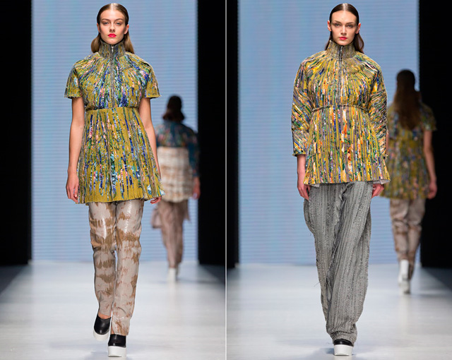 Бельгийский студент французского происхождения получил 50 тысяч евро, возможность создать собственную "капсулу" для H&M и устроить показ — 18 образов из коллекции, покорившей жюри, уже были представлены на подиуме Mercedes-Benz Stockholm Fashion Week на прошлой неделе. Яркие краски, покрывающие ткань небрежными мазками, будто это и не платье вовсе, а холст художника, сочетания разных принтов — коллекция получила название They Can Cut All Flowers, They Cannot Keep Spring From Coming. А вдохновили на ее создание молодого дизайнера актриса Тильда Суинтон (и ее роль в фильме "Я — это любовь") и картины Энгра. Суинтон с ее андрогинным лицом и худощавой фигурой в этой ленте выглядит невероятно женственно, и, возможно, именно это подтолкнуло Эдди Анемяна к использованию в коллекции и очень женственных, и жестких мужественных силуэтов. С одной стороны, почти диоровский new look, цветочные объемные юбки в пол, складки и воланы, с другой — скрывающие фигуру гиперобъемы, закрытые строгие костюмы. "Я представляю себе очень женственных девушек, которые ценят качество и классику, но любят и новые идеи и не боятся носить необычную одежду. Мои вещи могут казаться строгими, ведь я ищу вдохновение в области haute couture, но если посмотреть ближе, вы увидите грубые текстуры, ткани с рваными краями. Это именно та эстетика, которую я хотел создать", — рассказал о коллекции сам Анемян.