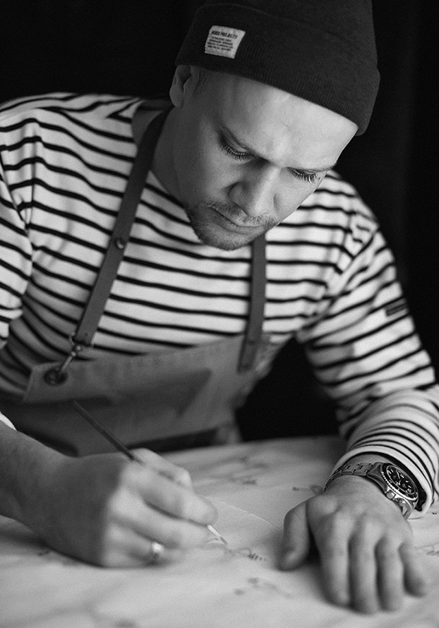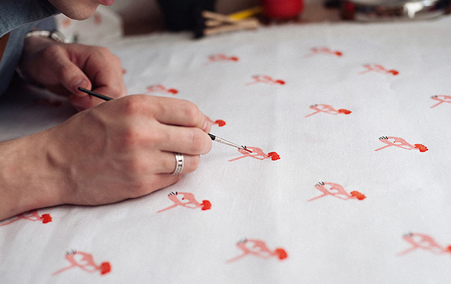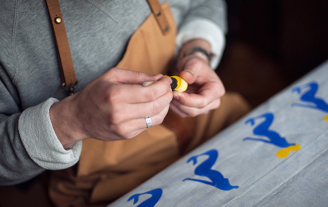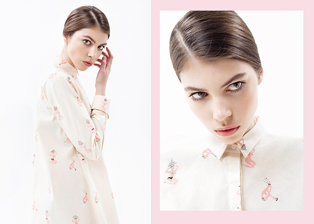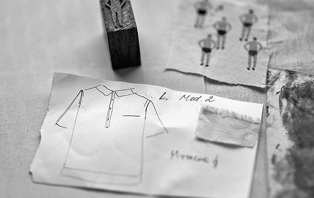 Результатом работы стала мини-коллекция из 5 моделей рубашек, которые прошли отнюдь не простой путь создания: ткань для их производства плетется вручную по специальной технологии, затем органический хлопок доставляют в Лондон. Далее в руках Оли Глаголевой ткань превращается в 2d-конструкцию рубашки. А после печати принта начинается еще один, последний этап — технологическая обработка.