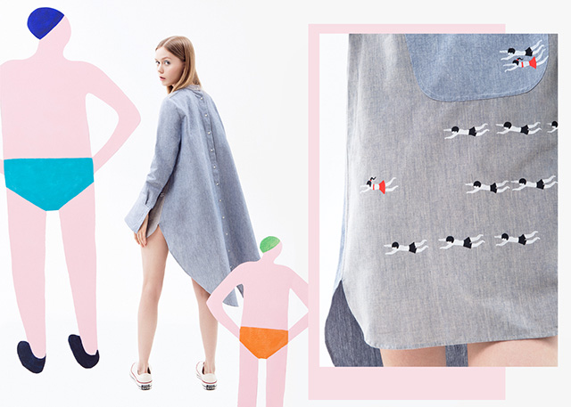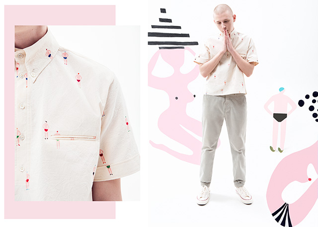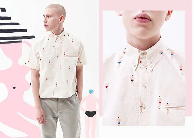Несмотря на легкомысленные сюжеты и расслабленный вид всех изображенных человечков-отдыхающих, название этой небольшой «капсулы» с ходу заявляет о серьезности намерений тех, кто над ней работал. Свою первую совместную коллекцию Дмитрий Пирожников, московский фотограф и художник, и Оля Глаголева, молодой дизайнер, назвали «Быть, а не казаться». Такую решительность мы невольно связываем с не так давно прогремевшей в Сети кампанией #beachbodyready, хотя, признаться, и подозреваем, что она здесь совершенно ни при чем. Но крошечные нарисованные девушки, ставшие героинями принтов, совершенно спокойно загорают топлес (пусть и всего лишь на белой ткани, а не на настоящем берегу моря), да и остальные человечки, гордо позирующие в своих красных плавках, уперев руки в боки, тоже выглядят более чем уверенными в себе.