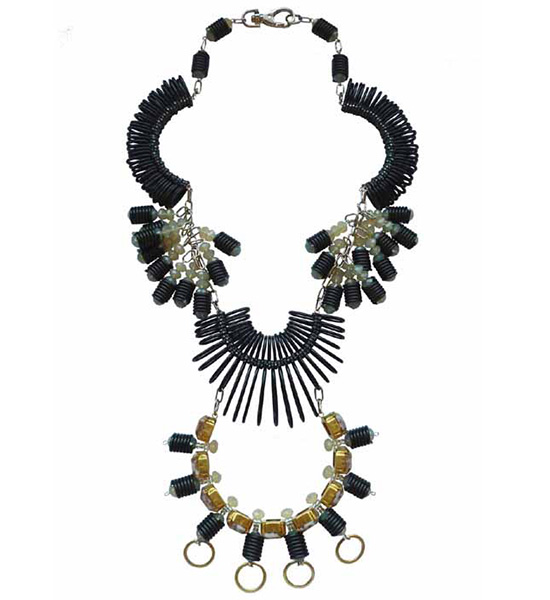 "Изюминка" одежды Kirsty Ward — в смелом крое и сумасшедших материалах, от заклепок и крючков до кристаллов Swarovski. Советуем идти на ее официальный сайт www.kirsty-ward.com за украшениями — ожерельями и браслетами, которые она делает из всего, что попадется под руку. Таких точно не будет ни у кого другого!