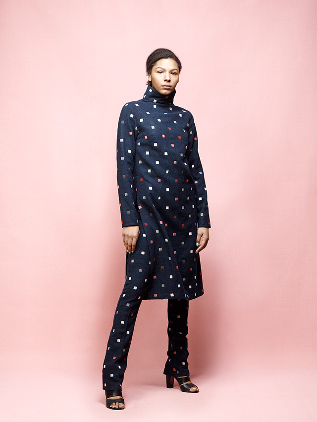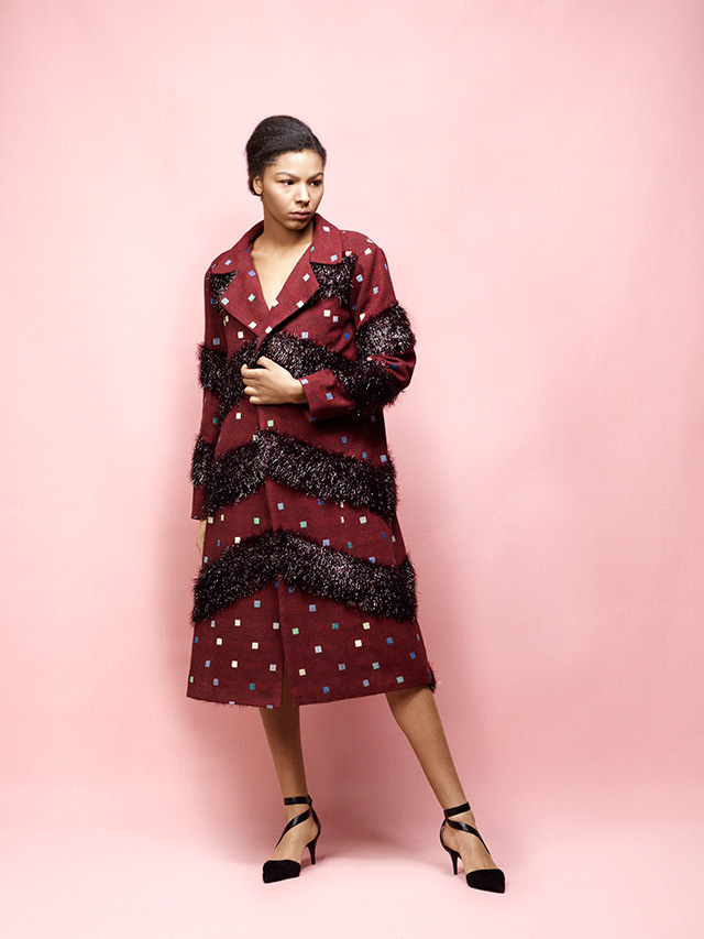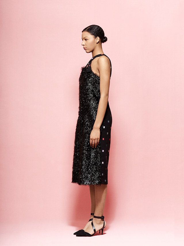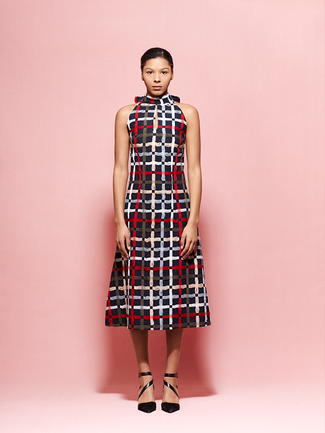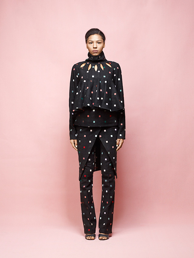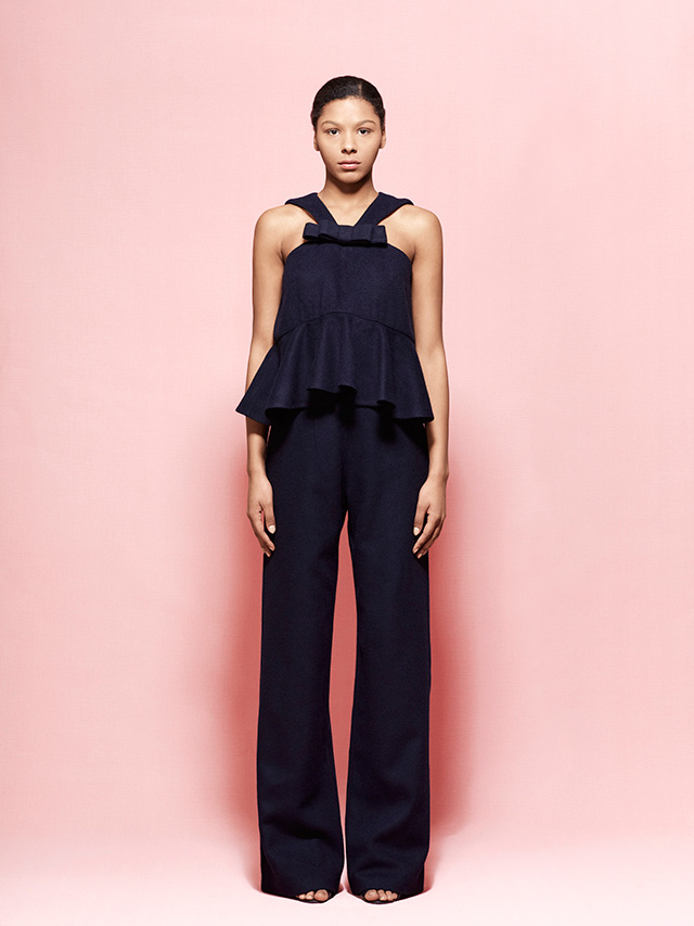 В основу коллекции легла популярная сейчас эстетика 70-х, а заодно и вечная готовность людей этой эпохи веселиться ночи напролет. Глядя на некоторые вещи, непременно хочется тряхнуть стариной, забыть про то, что с утра нужно отправляться на работу, и вместо этого — отправиться танцевать. Брюки клеш, усыпанные цветными квадратиками, красная блуза с пышнейшими рукавами и бантом на шее — остается только отыскать подходящие босоножки на платформе и заучить пару движений из репертуара Джона Траволты в «Лихорадке субботнего вечера». Похожее желание (уже без ассоциаций с Траволтой) вызывают и платья, сшитые как будто из новогоднего дождика, и яркие костюмы из платьев и брюк.