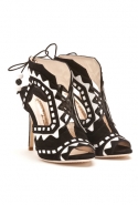 В этом году София взяла новую высоту: она стала участником программы Digital Fashion Shows — проекта Swarovski, the CFDA и the BFC, в рамках которого они выбирают самых перспективных молодых дизайнеров и дают им возможность продемонстрировать свои таланты на платформе digitalfashionshows.com. Там мы и ознакомились с ее коллекцией обуви и выбрали 20 самых красивых туфель, от классических лаковых лодочек до открытых черно-белых ботильонов на шнуровке.