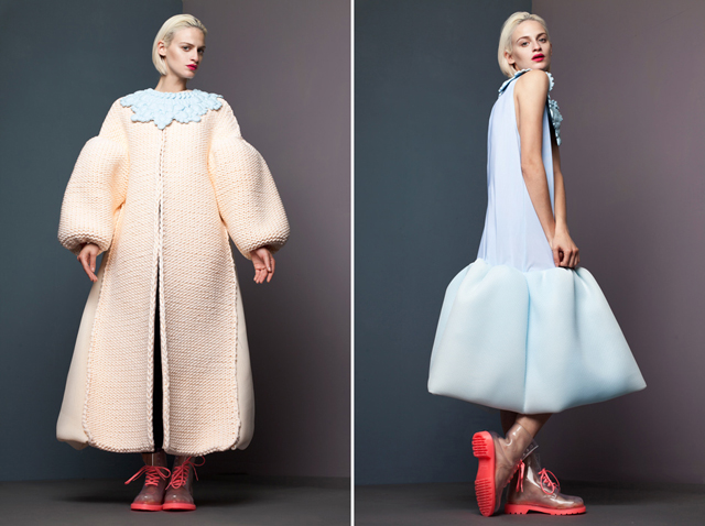Двадцатишестилетняя Сяо Ли из Китая после выпуска стажировалась в студиях Gareth Pugh и Alexander McQueen. Но в коллекции, показанной Сяо в этом июне на шоу выпускников Royal College of Art, больше чувствуется влияние Balenciaga — элегантные гиперобъемы Кристобаля Баленсиаги и эксцентричность Николя Гескьера.