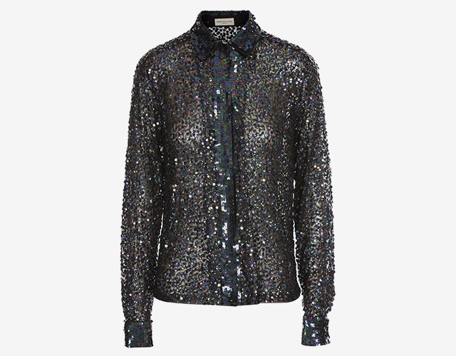 Эта рубашка, найденная нами в ЦУМе, может стать звездой любой вечеринки и сама по себе, без присутствия человека. Она целиком, от воротника до манжет, расшита пайетками и переливается, как елочный шарик в хрустально-сахарной «обсыпке», — для новогодней ночи ничего лучше и не придумаешь.