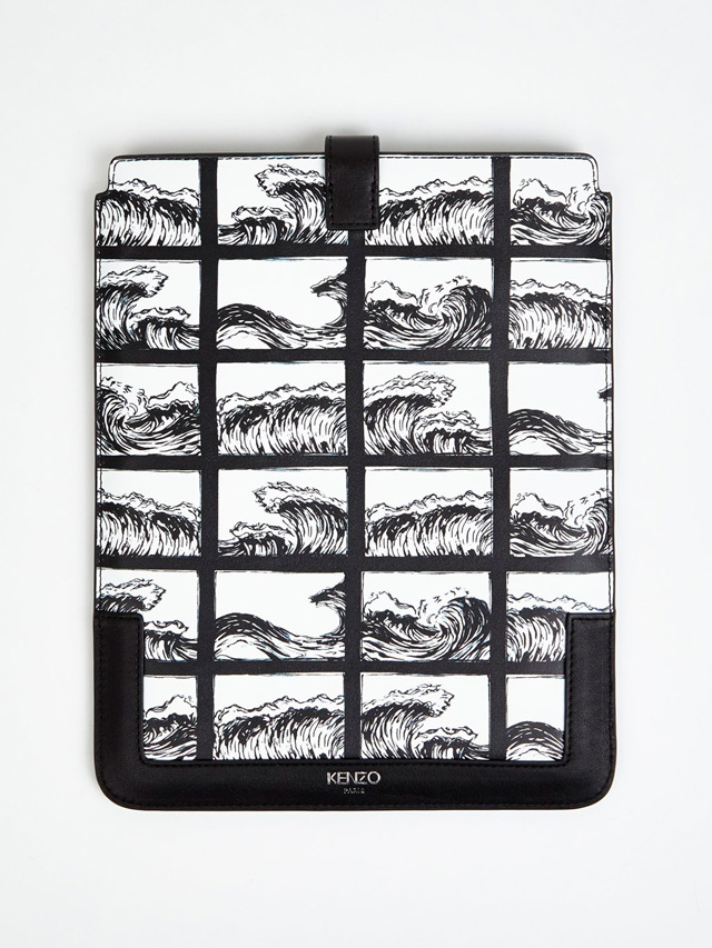 К новому сезону весна-лето 2014 команда Kenzo разработала дизайн аксессуаров для мобильных устройств с принтом в виде океанических волн. Наш выбор сегодня — вдохновляющий чехол для iPad от знаменитой марки. Новинка не только имеет привлекательный облик, но и довольно продуманный дизайн: планшет всегда будет в безопасности, так как аксессуар оснащен удобной кожаной застежкой. Сам чехол имеет черно-белую расцветку в виде сетки с изображением волн в каждом делении. Нижний кожаный кант декорирован логотипом модного дома. Найти новинку можно на сайте интернет-магазина Oki-Ni за 176 долларов.