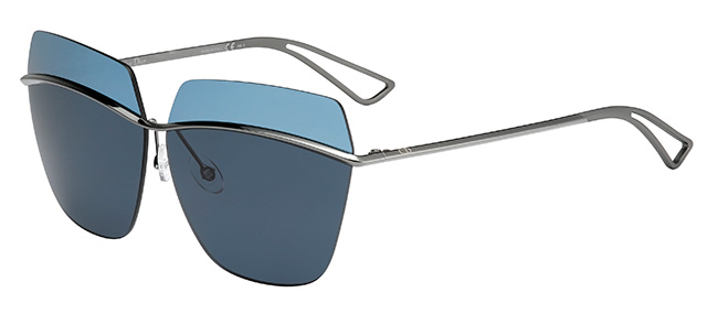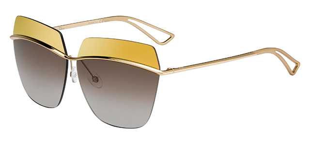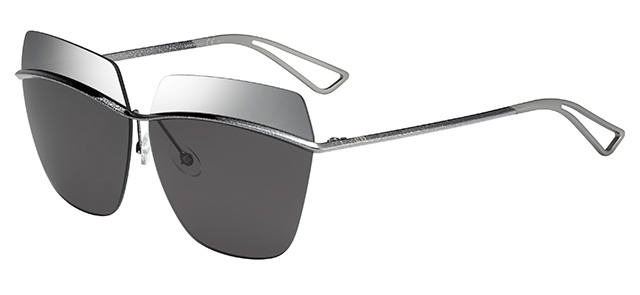 Очков Dior Metallic на подиуме не было — их публике представили чуть позже. Но благодаря тонким оправам и огромным линзам, разделенным на полупрозрачную и зеркальную части, в коллекцию они вписываются идеально.