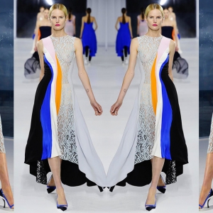 Вообще соединять в абстрактные рисунки черный, белый и яркие цвета — новое популярное дизайнерское решение. Помните платье Dior из коллекции resort 2014? Наряду с цветами Стеллы Маккартни там имел место быть еще и фиолетовый, все-таки речь идет о весенне-летнем сезоне, а значит в палитре должно быть как можно больше цветов. Интересно, подхватит ли зарождающийся тренд кто-то еще?