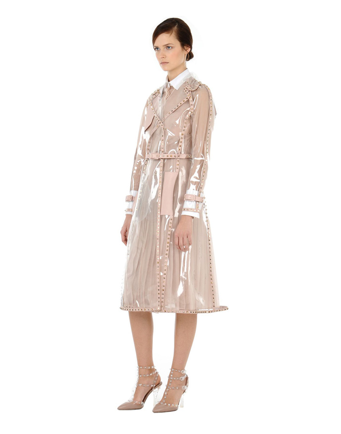 Признаемся честно: в плащ из весенне-летней коллекции Valentino мы влюблены окончательно и бесповоротно. Причин тому несколько. Во-первых, он сделан из ПВХ и потому полностью прозрачный (а значит идеальный для экспериментов со стилем). Во-вторых, он отделан каймой из кожи наппа с заклепками, по которым вещи Valentino сегодня легко узнаются. В-третьих, для теплых летних дождей ничего лучше и не придумаешь — тренч надежно защитит от ветра. А уж от такого защитника точно бы никто не отказался!