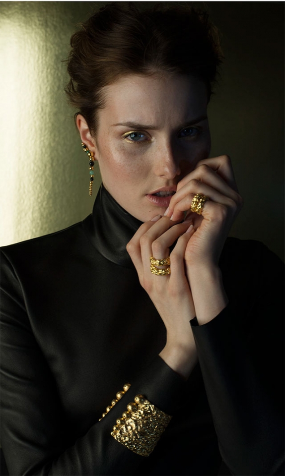 Украшения из новой коллекции Paula Mendoza, ювелирного дизайнера из Колумбии, сразу напомнили нам именно этих рептилий. "Змейки", собранные из разнокалиберных шариков, невероятно эффектно смотрятся в виде витых браслетов, колец и ожерелий. Несмотря на то, что украшения довольно массивны, выглядят они легкими и подвижными, и кажется, в любой момент могут ожить и броситься, мелькнув золотистым хвостом, как волосы Медузы горгоны, на обидчика своей хозяйки.