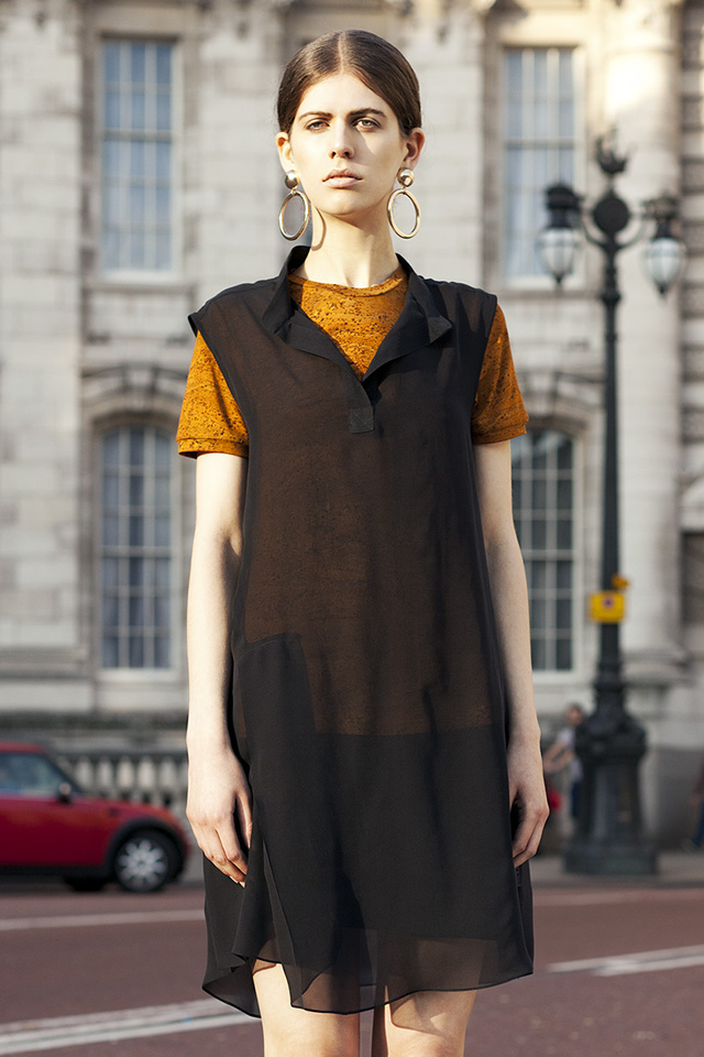 Первым показательным проектом ZDDZ в России стала капсульная коллекция Сельяновой для Oh, my. Эта российская марка по-настоящему базовой трикотажной одежды, основанная петербуржцем Сергеем Ковеленовым, — потенциальное идеальное будущее российского масс-маркета. Вещи нужных фасонов, но без лишних "дизайнерских" элементов: простые платья и юбки, свитшоты и боди безукоризненного качества по адекватной цене — действительно необходимые, но, увы, редкие для российских магазинов. Даша создала свою версию ходовых вещей Oh, my, применив технику соединения контрастных цветовых панелей в одежде. Полюбившиеся многим толстовки, свитшоты, майки и платья средней длины сшиты из геометрических черных и белых блоков — несложное графичное решение, позволяющее вещам оставаться базовыми и в то же время придающее им самодостаточности. Каждая вещь выпущена тиражом в 50 экземпляров, а посмотреть их и купить можно на сайте Oh, my. Благо, цены заманчивые — все вещи в коллекции не превышают порог в 3000р.