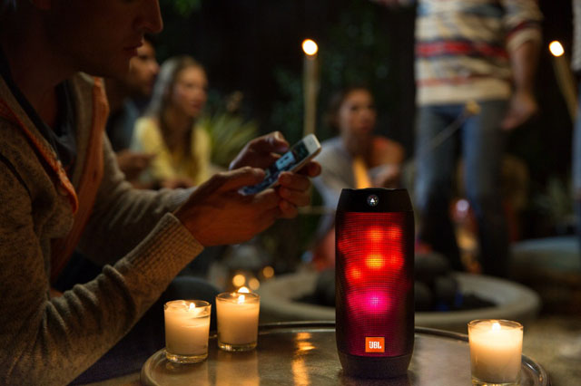 Кстати, о новогоднем звуке. Его обеспечит портативная акустическая система JBL Pulse 2 с LED-подсветкой, пульсирующей в такт музыке. Яркость и насыщенность ее цвета можно отрегулировать на свой вкус. Защищенная от влаги и пыли, JBL Pulse 2 позволит наслаждаться любимыми треками не только дома, но и на улице, дополняя звуки салюта и фейерверка. Встроенный аккумулятор системы дает возможность слушать музыку с подсветкой до 10 часов подряд — для новогодней ночи в самый раз.