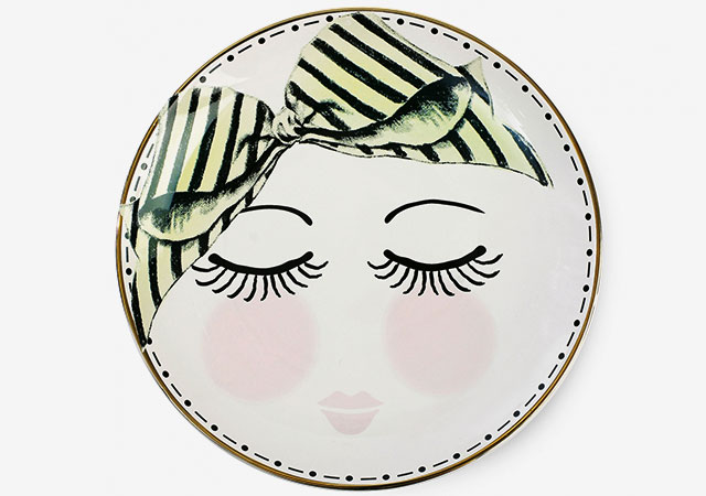 Забавная посуда найдется у Miss Etoile: трогательные мордашки с выразительным взглядом и легким румянцем украсили тарелки и пиалы.