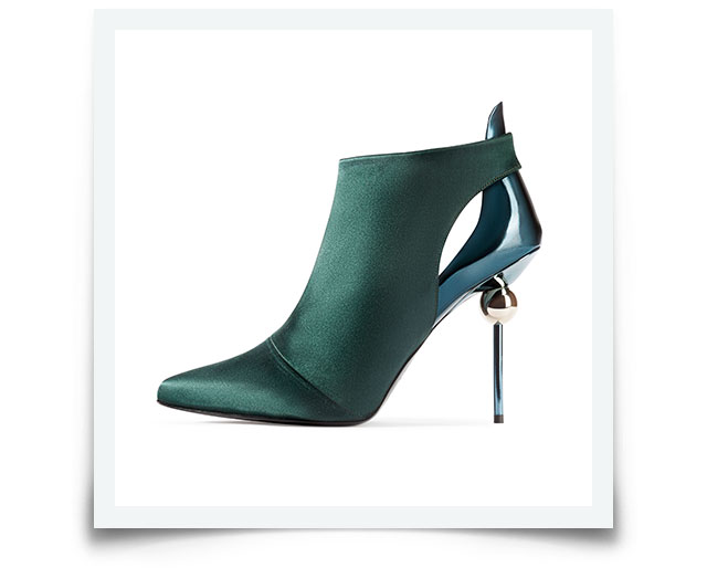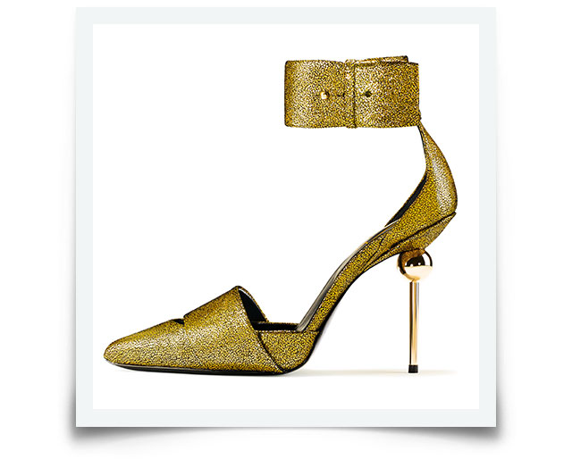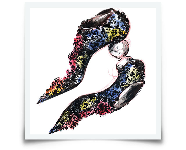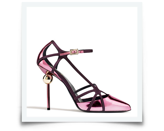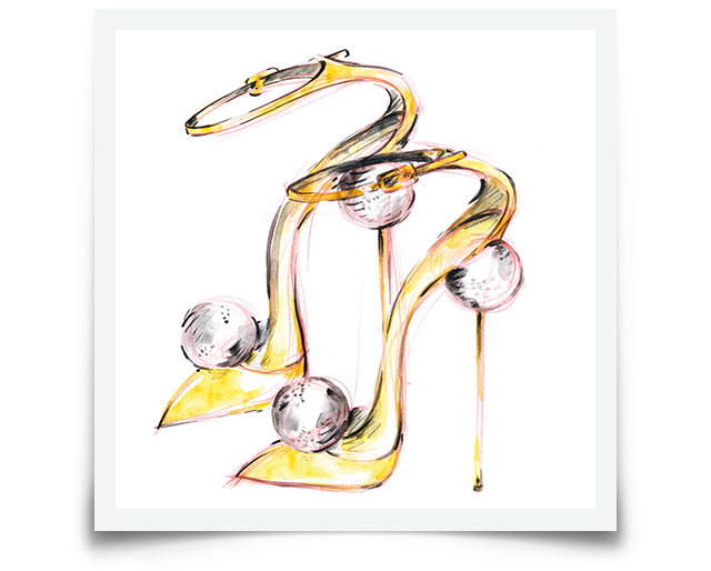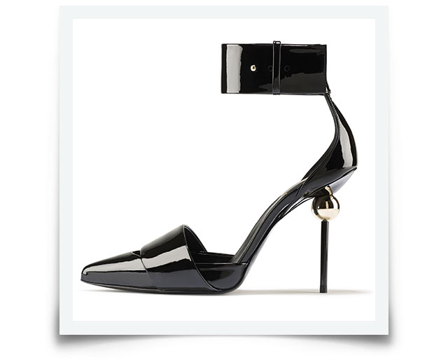 Номера два и три (цифры ничего не говорят об уровне значимости и используются исключительно для порядка) тоже новые модификации традиционного каблука — "рюмка" и "запятая", она же Virgule. Первый (kitten heel) был совсем невысокий, с широким основанием, переходящим в узенькую набойку, как ножка бокала, а второй похож на всем известный знак препинания. Роже Вивье, не закончивший свое образование архитектора, всегда питал особенную любовь к нестандартным формам и каждую пару обуви превращал в произведение искусства.