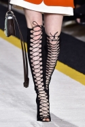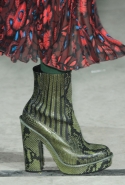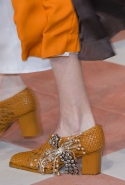 Ботфортам парижские дизайнеры уделили не так много времени, как их коллеги из других модных столиц. Зато дружно проголосовали за достаточно высокие, но очень устойчивые (пусть даже и из прозрачного или полупрозрачного пластики) каблуки. Были, конечно, и другие модели. У Miu Miu в главных ролях выступили вновь «бабушкины» туфельки с пряжками, словно обновленные при помощи ярких лаков для ногтей, а на показе Céline, например, на подиум вновь вернулись плетеные туфли на квадратном каблуке — такие же очаровательно и уродливо старомодные.