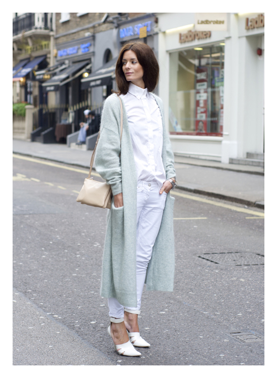 И действительно — что-то холодное и сдержанное осталось в ее стиле. Так одеваются только шведки и норвежки — черное на черном, много серого и коричневого, вязаных кофт и свитеров, простых и лаконичных форм. Тем не менее восхищает не сдержанность стиля, а жажда эксперимента и попытка их совместить. Чаще всего эксперимент удается и оказывается, что с белой рубашкой и джинсами отлично смотрится длинный, почти до пят, кардиган мятного цвета, да и парка с джинсами может выглядеть нескучно.