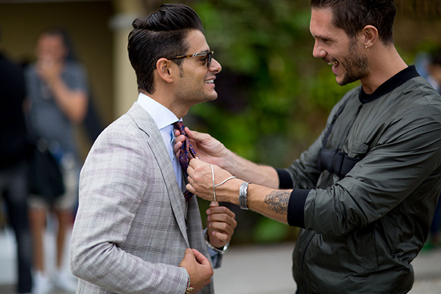 На этот раз на Pitti Uomo много особенных гостей: свою мужскую коллекцию Moschino сегодня представит Джереми Скотт, вчера с женской выступил Томас Тейт, а третьим почетным участником стал Карло Бранделли, креативный директор Kilgour. А вот герои street style, благодаря которым Pitti Uomo полюбили не только профессионалы, но и широкая публика, остаются неизменными. И хотя от их пестрой одинаковости все уже порядком устали, в этом трогательном постоянстве, как и в неизбежном ощущение дежавю при просмотре снимков, есть свое очарование.