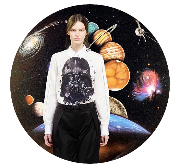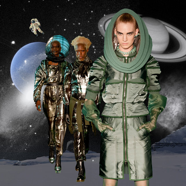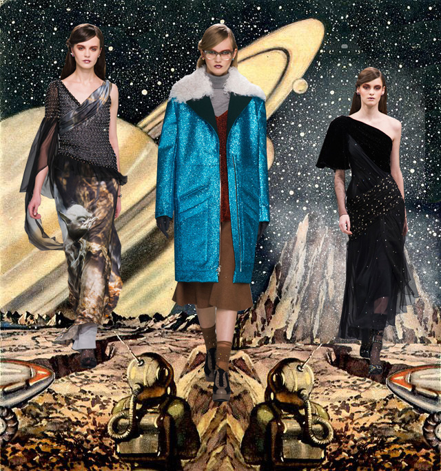 Рассказ о тенденциях приближающегося осенне-зимнего сезона мы решили начать с тренда, максимально далекого от всех земных хлопот: и от разговоров о комфорте, который стал новой движущей силой моды, и от будничных рассуждений о том, какую верхнюю одежду купить к грядущей зиме и как не испачкать в первый же день вещи модных пастельных оттенков. Смотрите выше! На межпланетном корабле, улетающем с поверхности старушки Земли в неизведанный и бесконечный космос, теряют вес не только человеческие тела и привычные предметы обихода, но и все прошлые, слишком земные проблемы. В конце концов, если даже перед водопадом Виктория или просто очень красивым московским закатом замираешь, понимая, насколько незначительна твоя жизнь в сравнении с окружающей красотой, что же чувствуешь, оказываясь наедине с бесконечностью?