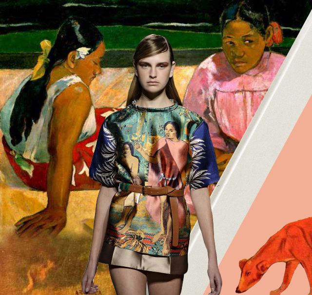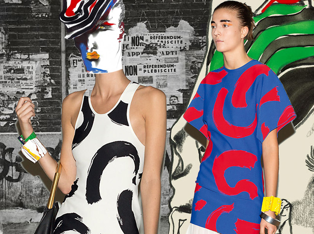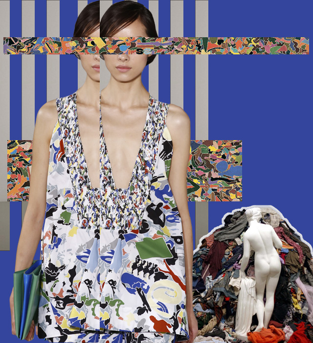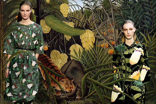 Ну а некоторые дизайнеры по старинке посвятили коллекции разным художникам или направлениям в искусстве, позаимствовав из их собраний идеи для принтов. В "городских джунглях" Hermès легко узнается Анри Руссо, а вот влияние Уэйда Гайтона в коллекции Helmut Lang распознать не так-то просто. Aquilano.Rimondi вспоминают Гогена, Jil Sander — "бедное искусство" и, в частности, картину Алигьеро Боэтти "Все". Фиби Файло в весенней коллекции Céline обращается сразу к двоим мастерам: иллюстратору Тони Вирамонтесу и фотографу Брассаю, знаменитому в том числе черно-белыми снимками работ уличных художников.