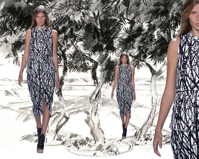 Поэтому дизайнеры дружат с художниками, запускают с ними совместные проекты — это повышает не только продаваемость, но и престиж. Популярность покровителей искусств всегда привлекала богатых людей, потому что придавала им дополнительный статус, а лучики славы спонсируемых живописцев непременно освещали и платежеспособные лица меценатов. Поэтому в новом сезоне многие дизайнеры и сами заглянули в мастерские художников, взявшись за акварель, любуясь текстурой холстов и необработанных, неоштукатуренных стен. Proenza Schouler рисуют углем на своих вещах переплетенные ветви деревьев, Kenzo берутся за цветные (голубые) карандаши, Calvin Klein Collection и Chanel взяли за основу перепачканную краской палитру художника или пантон. Миучча Прада пригласила сразу нескольких художников оформить пространство для показа — знаменитые принты и мозаики-лица на пальто и платьях Prada вдохновлены работами нескольких из них, а также наследием мексиканских художников-муралистов. Карл Лагерфельд, как всегда, пошел дальше всех и специально к показу создал целую коллекцию собственных произведений искусства: он, конечно, их только придумал, а не своими руками выстругал или отлил из подручных материалов, но такая практика в художественной среде довольно распространена.