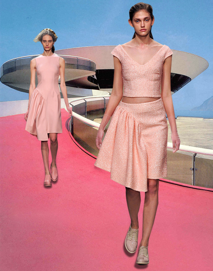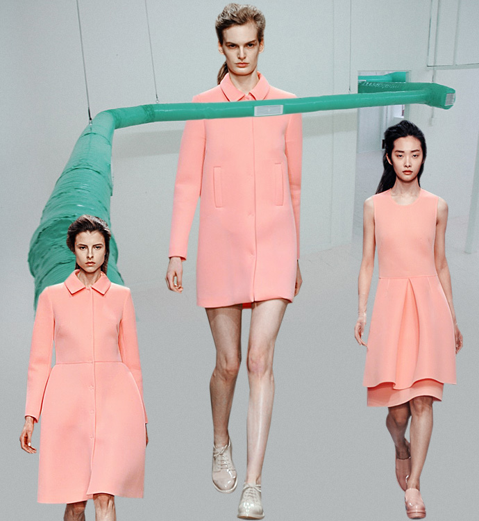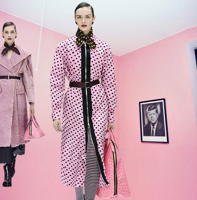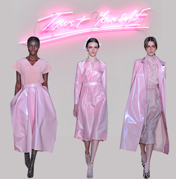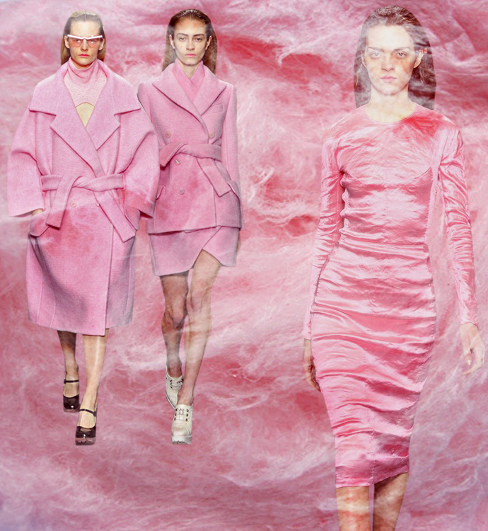 Этот цвет жевательной резинки (чупа-чупсов, сахарной ваты — нужное подчеркнуть) станет самой девчачьей тенденцией этой осени. Огромные розовые пальто Carven, пижамы Giles, платьица Moschino Cheap & Chic, пальто Miu Miu и Prada, плащи Roksanda Ilincic, костюмы Simone Rocha — перечислять можно до бесконечности. Как будто бы этот цвет нравится всем вокруг.