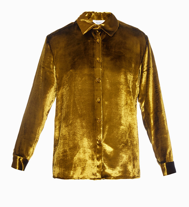 Бархат, материал визуально тяжелый и плотный, возвращается в моду каждый осенне-зимний сезон. Не стал исключением и текущий: марки дружно вспомнили о нем, а кто-то, как Sonia Rykiel, Emilio Pucci или Givenchy, и вовсе сделал главным героем своих коллекций. Бархатными теперь могут быть не только платья, пиджаки и театральные занавесы, но и брюки, туфельки и рубашки. А в коллекции Rosie Assoulin мы обнаружили, например, даже легкие майки на тонких бретелях из нежно-розового бархата, но выбор сделали все-таки в пользу золотой переливающейся блузы.