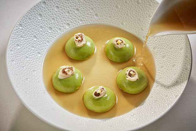 Другой пример: мое дегустационное меню начинается с очень нежного вкуса — цветной капусты. Сам по себе этот продукт скучный и более чем странный для меню ресторанов высокой кухни, но, тем не менее, в нашем блюде цветная капуста — это основа, и она приправлена миндальным молоком, плюс неожиданный вкус морепродуктов. Завершает композицию соус на основе сока юзу. Получается роскошно и интересно.