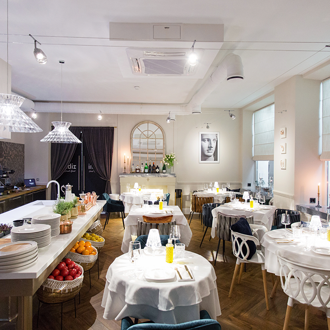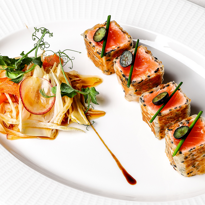 Шеф-повар Алена Комар глобально обновила одесскую кухню ресторана. Теперь из легендарного Привоза привозят осенние продукты для парфе «Мимоза» с печенью трески (450 р.), хумуса с вялеными томатами и перцем чили или с кедровыми орехами (500 р.) или гуакамоле на гречишных тостах без яиц и дрожжей (680 р.). Появились телячьи мозги (620 р.), лосось с фенхелем (1440 р.), суп гороховый с копченостями (510 р.), из тыквы (450 р.) и из чечевицы (360 р.), филе голубого палтуса с диким рисом под соусом том-ям (1700 р.), паста ручной работы с боттаргой и трюфелем (1900 р.). Максимально выросло десертное меню — появилось сразу девять позиций, среди них: украинский пирог-плацинда с тыквой (550 р.), морковный торт со сметанным кремом, грецкими орехами, чипсами из миндальных лепестков и манговым соусом (550 р.).