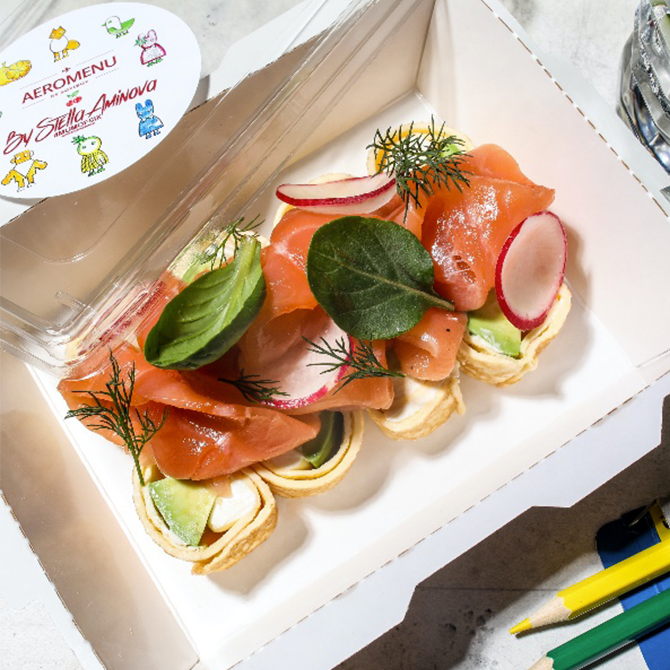 Если вы собрались лететь с детьми из Шереметьево, теперь у вас будет шанс познакомиться с новым бортовым меню для малышей от Стеллы Аминовой. Бизнесвумен и мать шестерых детей использует весь свой богатый опыт, чтобы маленькие путешественники были максимально увлечены. В меню — пудинг с манго и семенами чиа (590 р.), малиновое желе (590 р.), омлет-ролл с сыром креметта и красной икрой (600 р.), овощные палочки с сырным соусом (350 р.), печенье Mumofsix (100 р.), овощные чипсы (350 р.), круассан с сыром (490 р.), круассан с куриной колбасой (490 р.), круассан с сахарной пудрой (250 р.). Все блюда приготовлены из свежих натуральных продуктов без использования консервантов, и в дополнение к ним идет увлекательная раскраска с мини-набором карандашей.