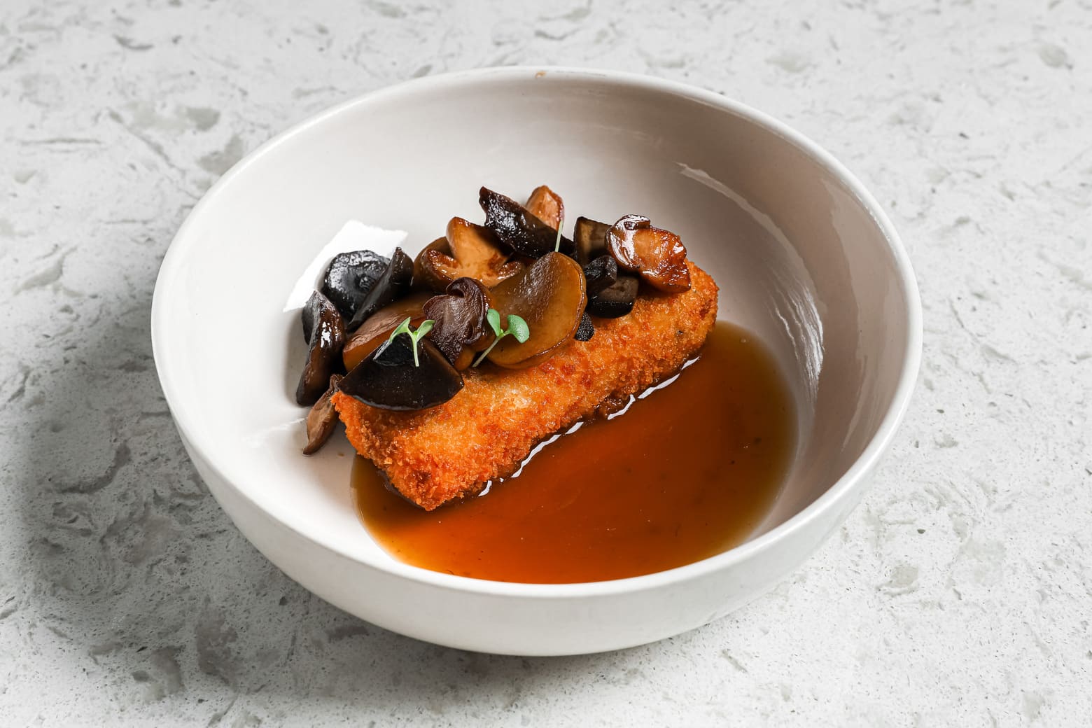 В авторском постном меню Дмитрий Булдыгин постарался максимально сохранить полезные свойства овощей. В качестве закуски в стол подойдет хумус из баклажана с нутом и маринованным в бальзамическом уксусе перцем рамиро (670 руб.) и хрустящий картофель с авокадо и постным домашним майонезом (750 руб.), а в основном меню стоит попробовать печеную молодую капусту с кремом из кешью (680 руб.), стейки из маринованного тофу в панировке с густым соусом из лесных грибов (2050 руб.) и фокаччу с лесными грибами (1100 руб.).
