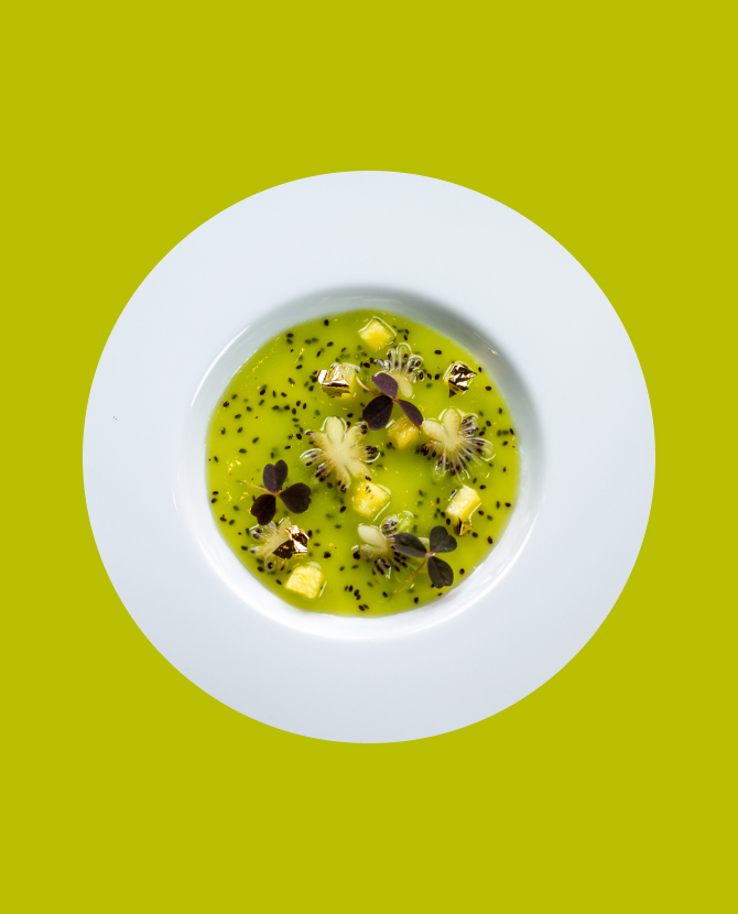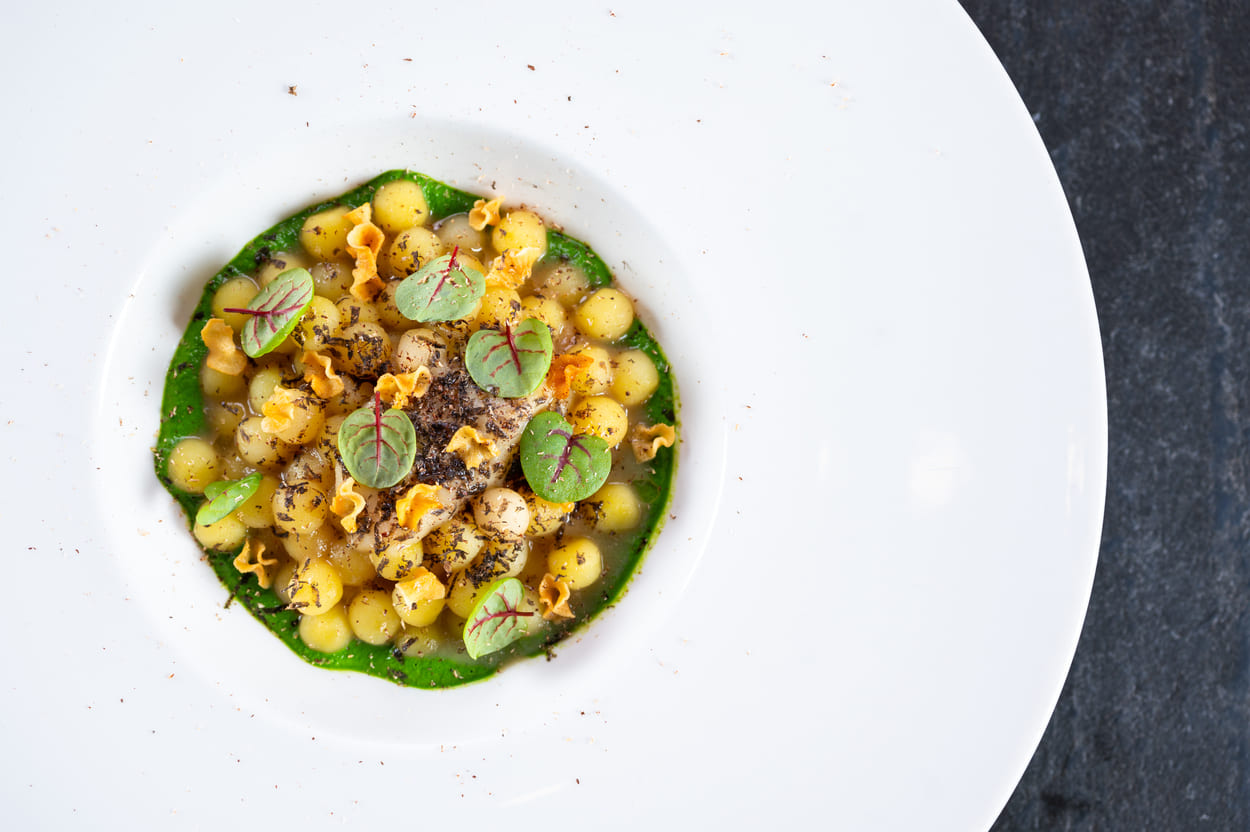 Шеф-повар мишленовского ресторана Давид Эммерле даже во время поста подошел к разработке меню как к настоящему искусству. Мильфей из разрезанного на тончайшие пластины баклажана подается в виде стейка, дополненного разными видами помидоров, икрой из баклажана и листами базилика в легчайшей темпуре, а шляпки шампиньонов начиняют мятой цветной капустой и грибным дюкселем с соусом из топинамбура. Но настоящий «хит» меню — «каша» из картофельного жемчуга на молоке из сельдерея с черным трюфелем.
