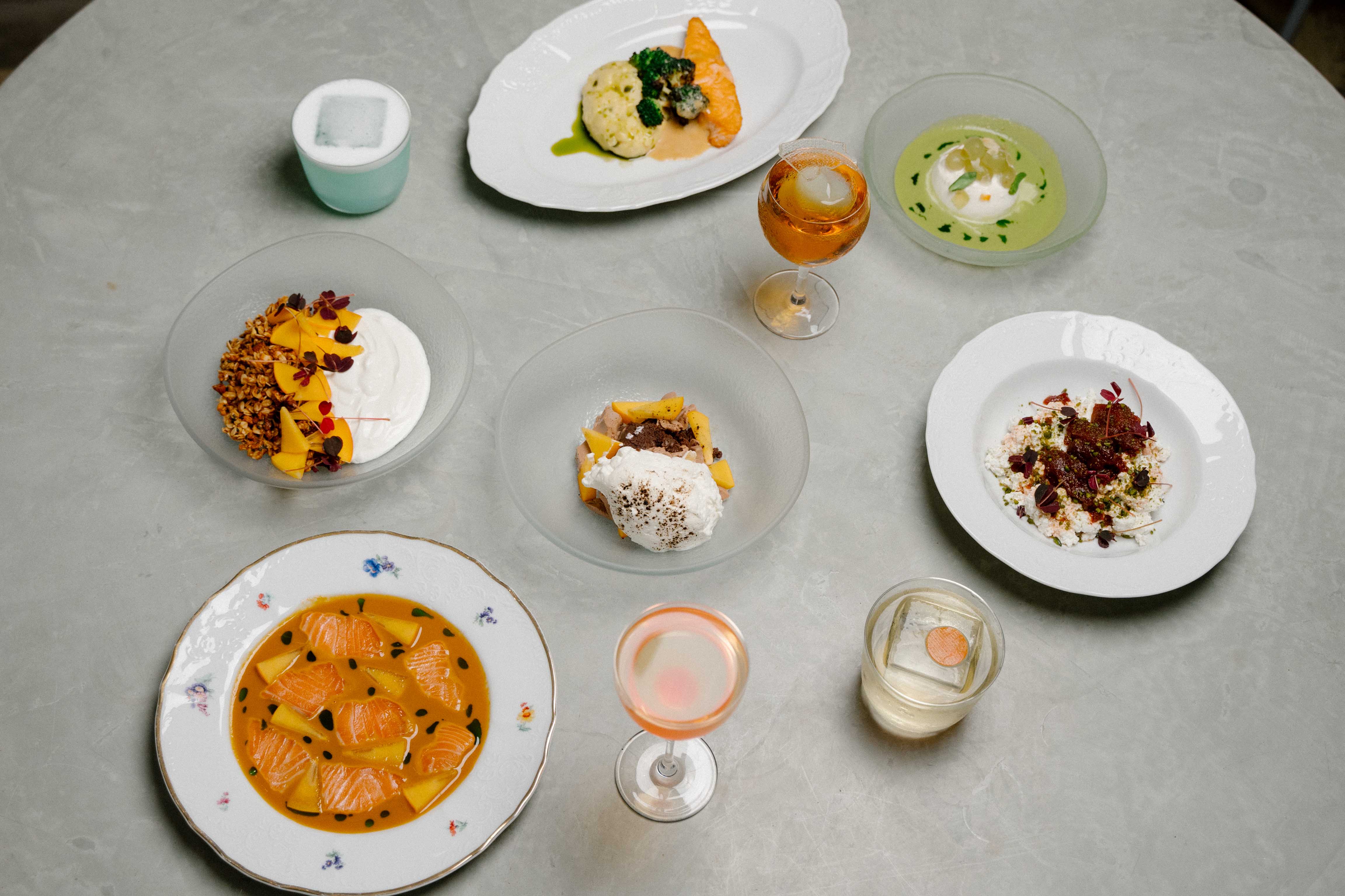 Шеф-повар Артем Чудненко следует намеченным планам и обновляет позиции поздних завтраков. Помимо классики в виде омлета с мортаделлой и скрембла с лососем, Чудненко поработал в направлении ярких сочетаний: творог замиксовал с айвой и кислицей, зеленую гречку — с пекорино, а яйцо пашот — с лисичками, которые замариновали специально еще с ранней осени. В эту субботу, 11 ноября, ресторан также запускает special-меню с телеграм-каналом Hedonist Cats (его автор — Юля Сусова), которое будет действовать в течение месяца. Среди позиций — авокадо-тост с пряными орехами и жареным халуми, на создание которого вдохновила Барселона, каша из киноа с фисташкой и вареньем из инжира. Согреваться будем теплым коктейлем на розовой матче с клубничной водой и коллагеном Beauty Spoon.