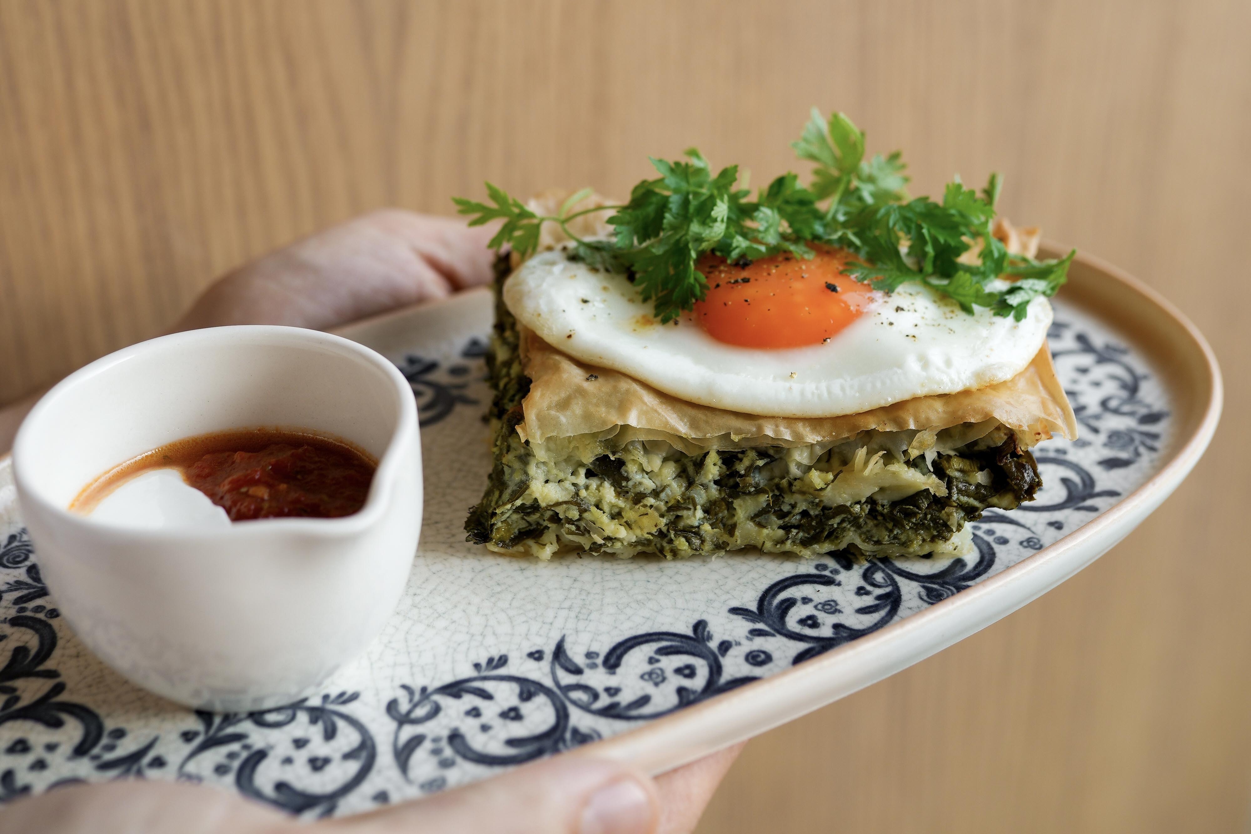 В Moró премьера — завтраки в соавторстве с паблик-гидом Restinmsk. Для большой компании подойдет одноименный завтрак на большом деревянном подносе с разнообразными дипами, яйцами пашот на подушке из томатной основы, лососем, авокадо, горячими питами, свежими овощами и десертом. Обращает на себя внимание классика греческой кухни — спанакопита из хрустящего слоеного теста с сыром, шпинатом, топленым яйцом, сметаной и соусом из томатов. И не отказываем в удовольствии насладиться десертом, например пончиками с голубикой и шоколадным соусом.