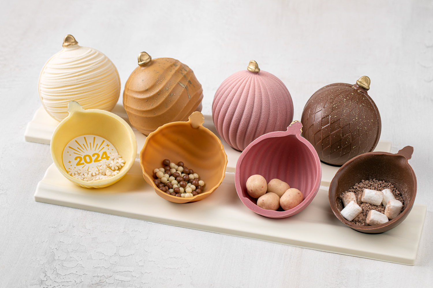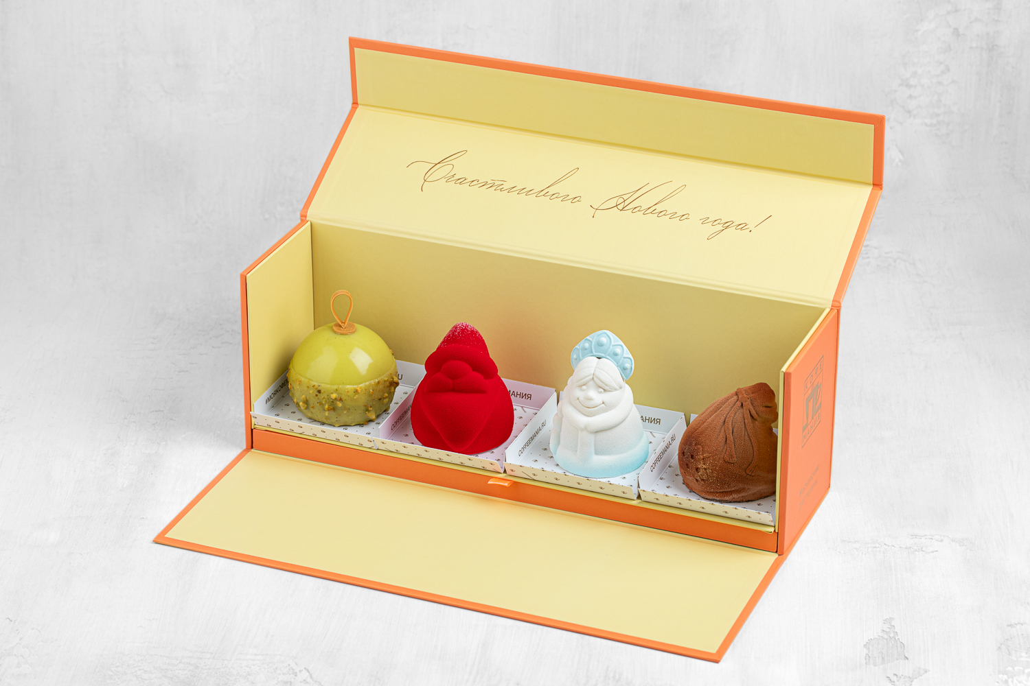 Не понаслышке знаем, что о новогодних подарках лучше позаботиться заранее. Команда проекта во главе с шеф-кондитером Еленой Железняковой подготовила лимитированную серию сладких наборов, вдохновленных воспоминаниями о детстве. Ассорти из шоколадных шаров с сюрпризом, один из которых — бомбочка для приготовления какао (просто залейте шар горячим молоком, чтобы чашка наполнилась вкусным какао с зефиром). А для тех, кто предпочитает классику, — набор из четырех десертов: «Деда Мороза», «Снегурочки», «Мешка с подарками» и «Елочного шара».