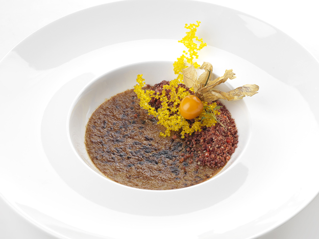 В этом году ресторан представил обновленную концепцию меню. Структура осталась прежней — это дегустационные сет-меню: европейское и русское, закуски, супы, блюда из рыбы и мяса, десерты. Новыми стали разделы под названием «Вдохновение шеф-повара» с блюдами-фаворитами Йена Минниса и раздел с вегетарианскими блюдами. Также в меню появились блюда, которые делятся на компанию: целый краб или запеченный целиком в корочке из соли морской волк. Этот раздел будет расширяться каждый месяц.