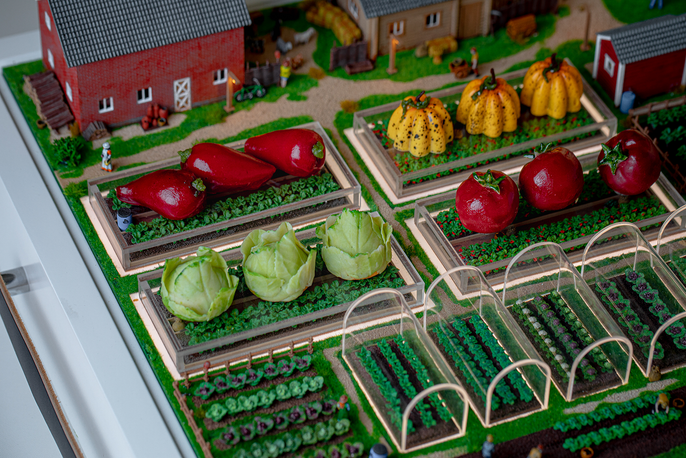 Twins Garden обновил подачу комплементарных десертов к дневному и вечернему сетам. Макет сделан на основе фермы в деревне Охотино в Ярославской области, которая в теплый сезон обеспечивает ресторан овощами, зеленью и фруктами. Шеф-кондитер Елена Язова реалистично воспроизвела продукты в сладкой подаче: в парниках расположились перцы, баклажаны, томаты, а на грядках — капуста, морковь и тыква.