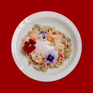 Когда за окном серость, особенно хочется добавить в жизнь красок. В этом поможет новый проект NAOMI Bistro, в котором интерьер дополнили акцентные и порой сюрреалистичные детали: от больших цветов и панно на стенах зала до парящего в пространстве стола. Шеф-поваром стал Андрей Большаков (су-шеф Frou Frou и CuttaCutta). К салату с бурратой он добавил лаванду, а к гарам масала — рагу из чечевицы. Обращает на себя внимание раздел горячих блюд, в котором филе сибаса с пюре из пастернака и утиная грудка с капустой и лавандой. В качестве фирменного десерта — крем на основе сливок и белого шоколада с лавандой, который подается с инжиром, меренгой из фиалок и малиновым желе.