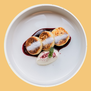 В новогоднем сете от Артема Чудненко много отсылок к традиционным праздничным блюдам в авторской интерпретации: фингер-фуд с красной икрой и бульоном из водорослей, холодец из утки в азиатском стиле, десерт из хлеба с мороженым из печеного картофеля и другие позиции. Стоимость — 6500 р.