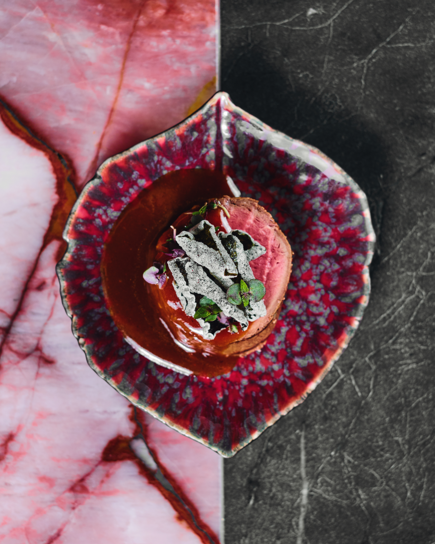 Бар в ЖК «Пресня Сити» с собственной лабораторией — над авторскими напитками работал Михаил Пугачев (Mitzva Bar, Soma). Коктейли (750 р.) наливают за подсвеченной изнутри барной стойкой из бразильского розового кварцита. К ним предлагается фуд-пейринг от шефа Андрея Валькова: пирог с уткой (860 р.), ролл из тунца с крабом (1 100 р.), пряный татаки-стейк (700 р.), тако с уткой (580 р.), пончики с треской (550 р).