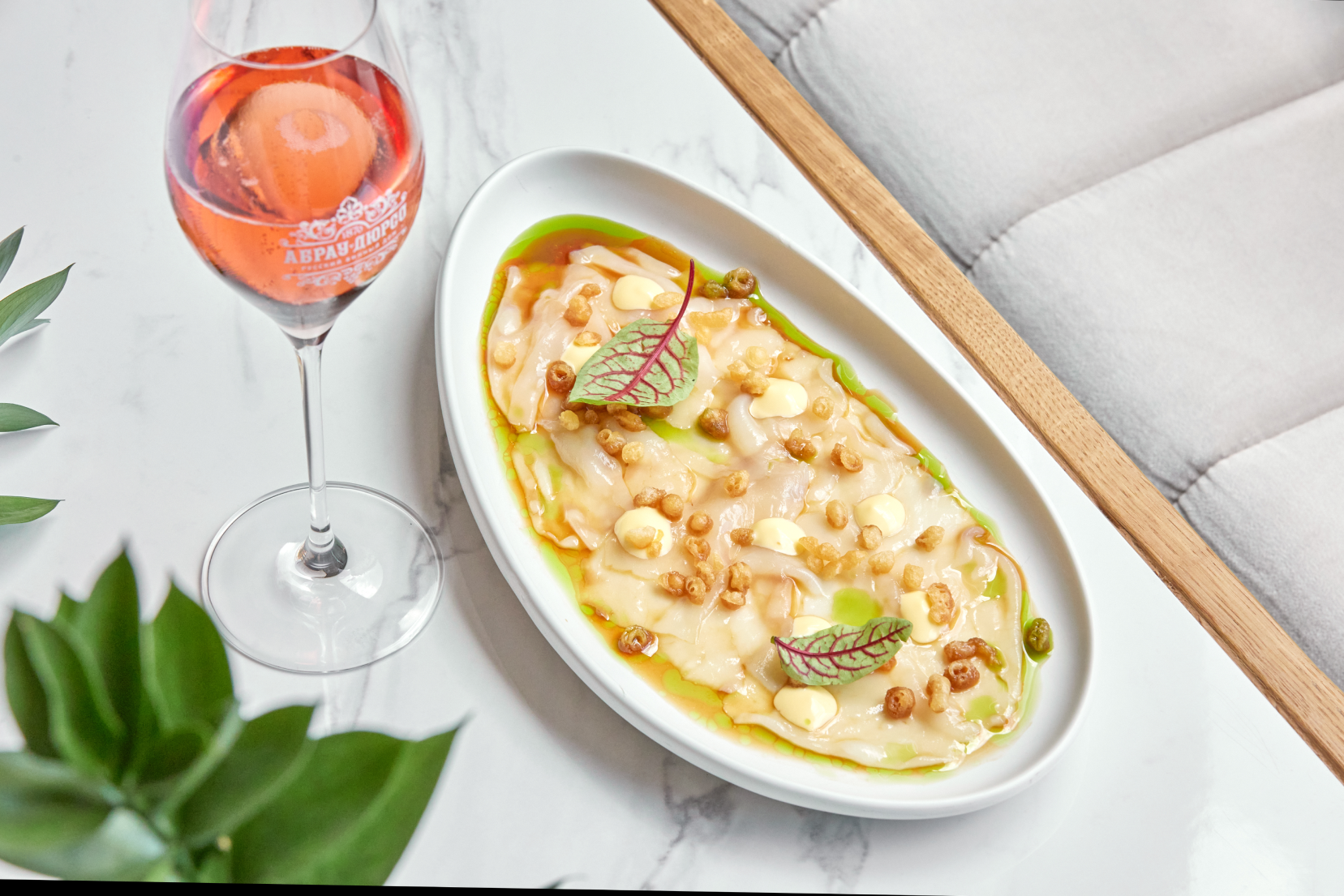 Третий по счету ресторан в сети — и первый флагманский в Москве. Здесь же находятся винный бутик, музей и дегустационный зал. Шеф-повар Павел Тарасов (White Cafe, «Рыба моя») активно использует черноморские продукты и не только. В меню найдете форшмак из черноморской сельди (470 р.), креветки в кипящем виноградном масле Абрау-Дюрсо (690 р.), эскарго с зеленью в соусе «Шампань» и хрустящими гренками (950 р.), мини-чебуреки с мясом рапана, томатной аджикой и сметаной (690 р.), телячью щеку в винном соусе (890 р.), фетучини с черноморским рапаном и креветкой (890 р.), медовик (550 р.). Сомелье подскажет идеальное винное сопровождение: бокал игристого — от 280 р., белого — от 330 р., красного — от 300 р.