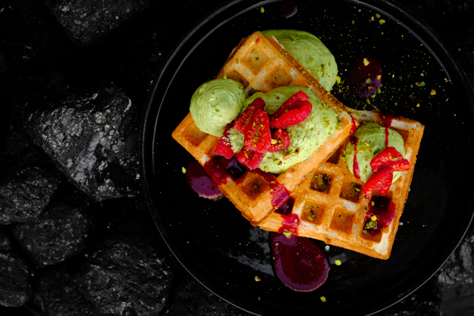 В меню завтраков ресторана на Никитской появилось 13 свежих позиций. Выбор с утра сделать сложно, глаза разбегаются: брускетта с пастрами, глазуньей и шпинатом (600 р.) или бейгл с креветками и бурратой (780 р.); из сладкого — эклер с маком (350 р.) или воздушные вафли с фисташковым кремом и малиной (390 р.). Многим, вероятно, лето-2019 запомнится «шакшукой Васильева» (580 р.) — подарком заведению от бывшего шефа Level 2 Ильи Васильева. Это довольно острая, о чем заранее предупреждают официанты, и при том идеальная от похмелья штука. Запивать ее — бокалом просекко (600 р.) или кипяченой тибетской ромашкой в чайничке (450 р.)