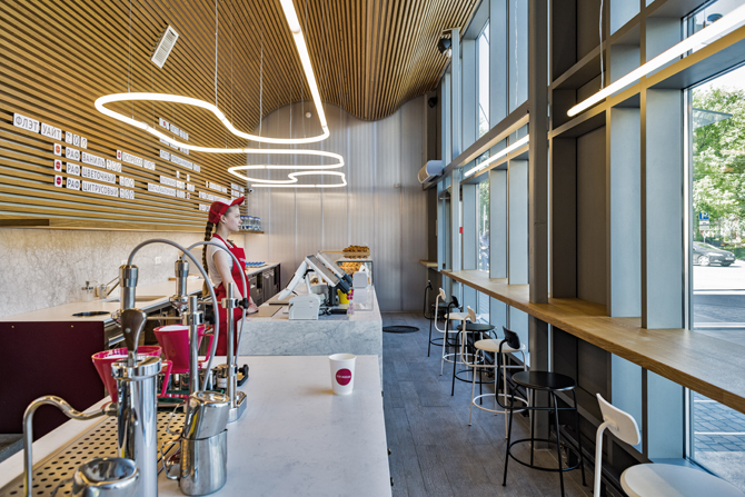 Уникальное место, которое работает как очень бюджетная кофейня с первой в России автоматизированной системой заваривания кофе. На самом деле это шоурум комбината питания «Братьев Караваевых». Владельцы московских кафетериев и столовых могут здесь выбрать и заказать продукцию в свои заведения, а обычные посетители — быстро, недорого и удобно перекусить (вся еда помещается в одной руке и не требует приборов). Как и в своих других успешных проектах («Старик и море», «Рынок и общепит»), владелец предприятий Евгений Каценельсон делает акцент на качество и низкие цены: сэндвичи по 100 р., салаты в вафельных стаканчиках по 50 р., десерты по 50 р.