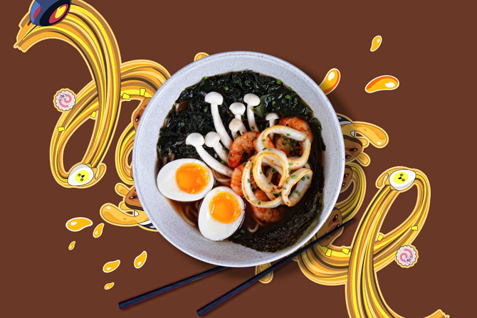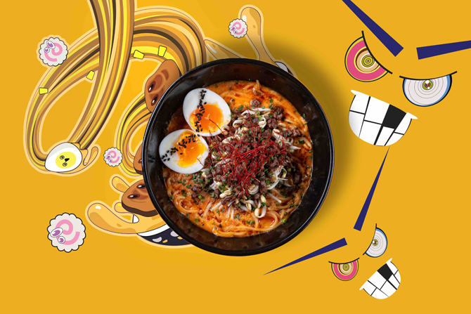 Выпускник японской рамен-школы Yamato, шеф-повар J'Pan Евгений Трофимов разработал меню из шести раменов. Блюдо готовят 5 минут, а если дольше, то отдадут бесплатно. Самый дорогой рамен — «Цунами» на рыбном бульоне с креветками, кальмарами, водорослями вакаме, грибами шимеджи, зеленым луком и яйцом (650 р.). Самый острый — «Взрывной Дан Дан» на свином бульоне с острым фаршем из свинины, проростками фасоли, жареным луком и маринованным яйцом (380 р.). Вегетарианский рамен делают на грибном и овощном бульонах с бок-чой, шиитаке, эноки, древесными грибами и ростками дайкона (550 р.). Запить острую и не очень лапшу предполагается пивом (от 250 р.), саке (от 600 р.) или сётю (от 450 р.), который подается на выбор в чистом виде, с горячей водой или содовой.