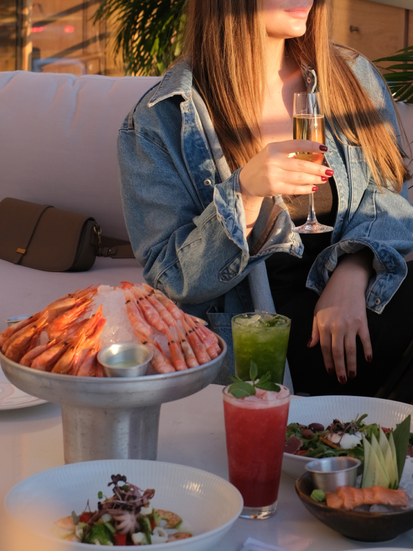 Ресторан Boston обзавелся верандой на 60 посадочных мест. Теперь здесь можно отлично провести время после шопинга, отдохнуть и встретить закат. Меню не отличается от основного — знаменитые креветки на льду на большую компанию, подкопченный лосось на ольховой щепе и паста с крабом, креветками и гребешками. В винной карте 38 позиций по бокалам, в том числе безалкогольные варианты, так что подобрать пейринг не составит труда.