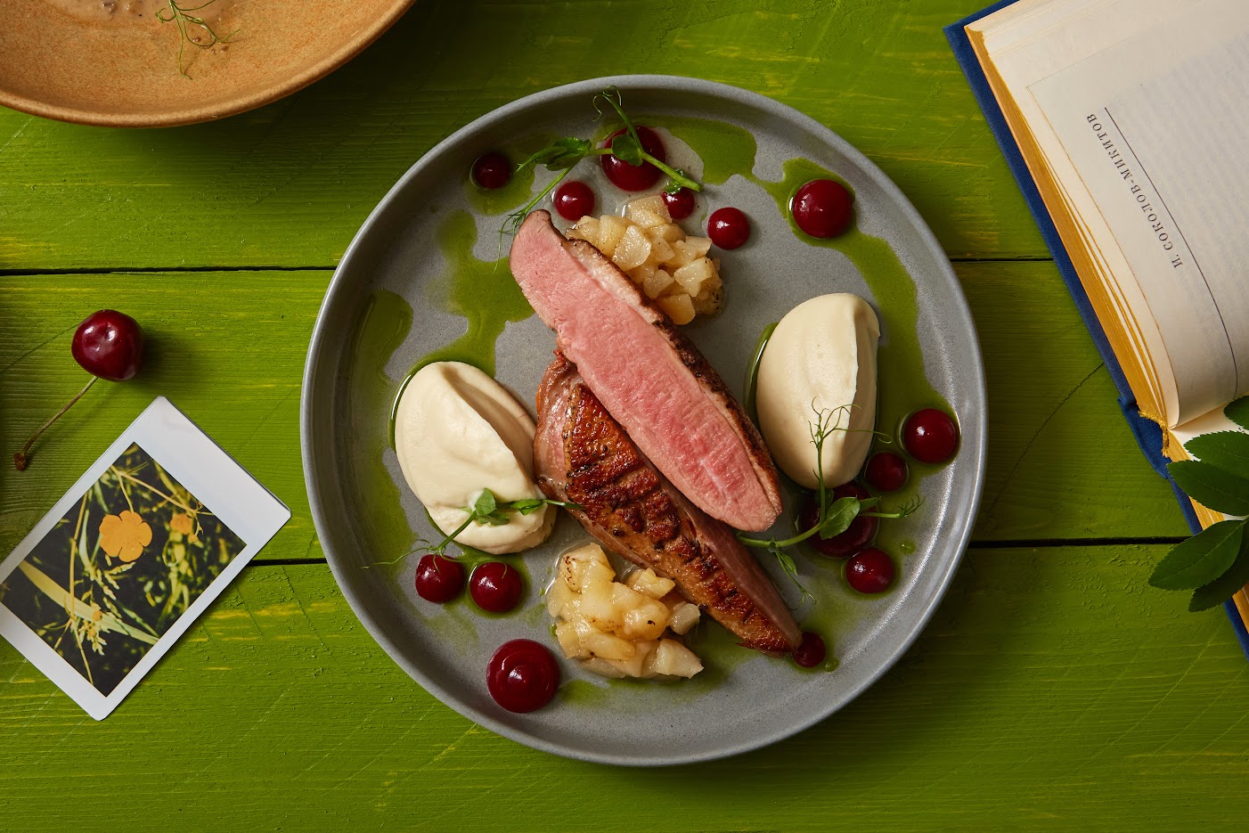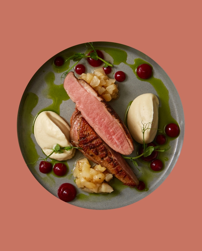 В летнем меню бренд-шеф Станислав Левохо, помимо классики в виде зеленой спаржи с яйцом-пашот, вареников со шпинатом и классического щавелевого супа, поработал в направлении необычных сочетаний — он приготовит салат из морепродуктов с нектаринами и печеные перцы с балтийской килькой и сельдереем. На горячее рекомендуем попробовать говяжьи ребра под вишневой глазурью и нежное мясо цыпленка с печеной грушей и салатом в мандариновой заправке.