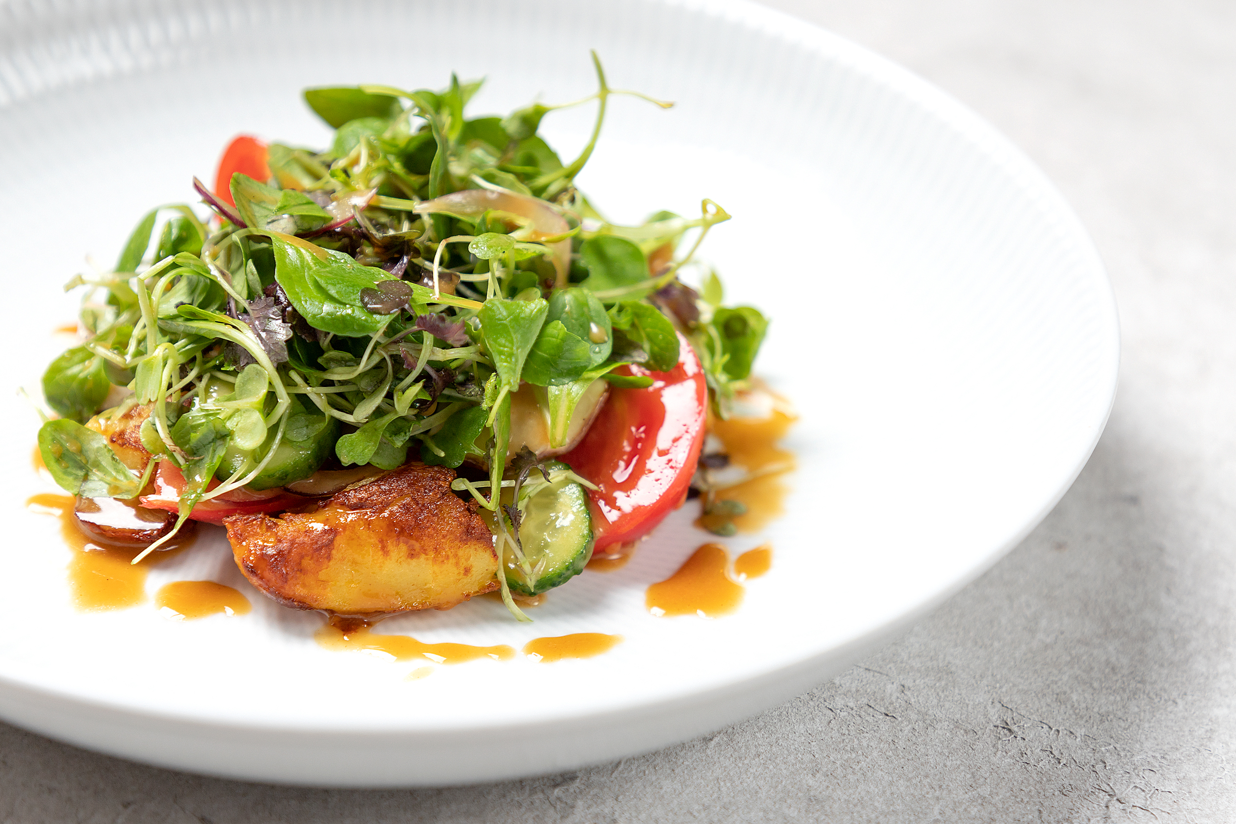 Картофель с гуакамоле и артишок с узбекским помидором