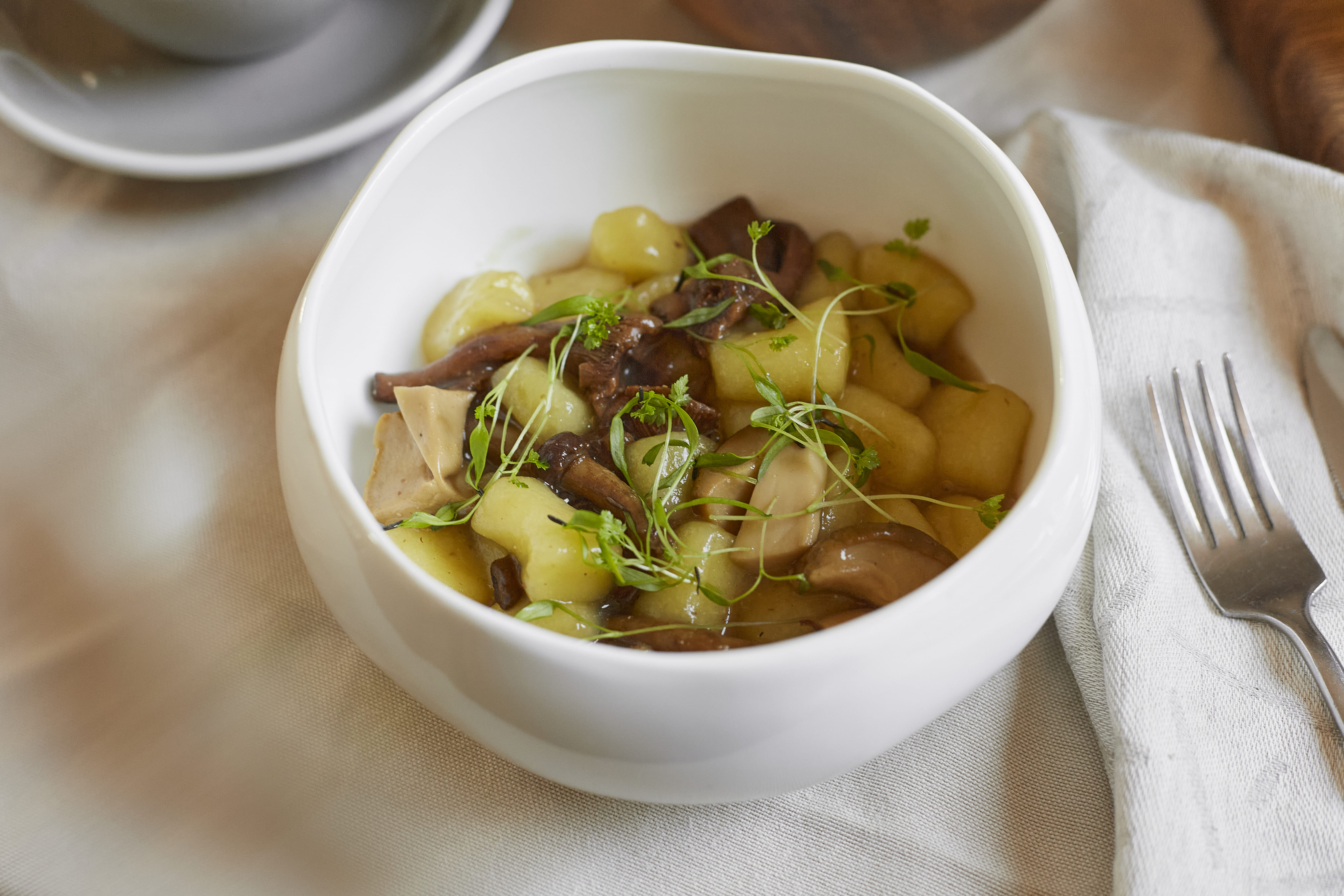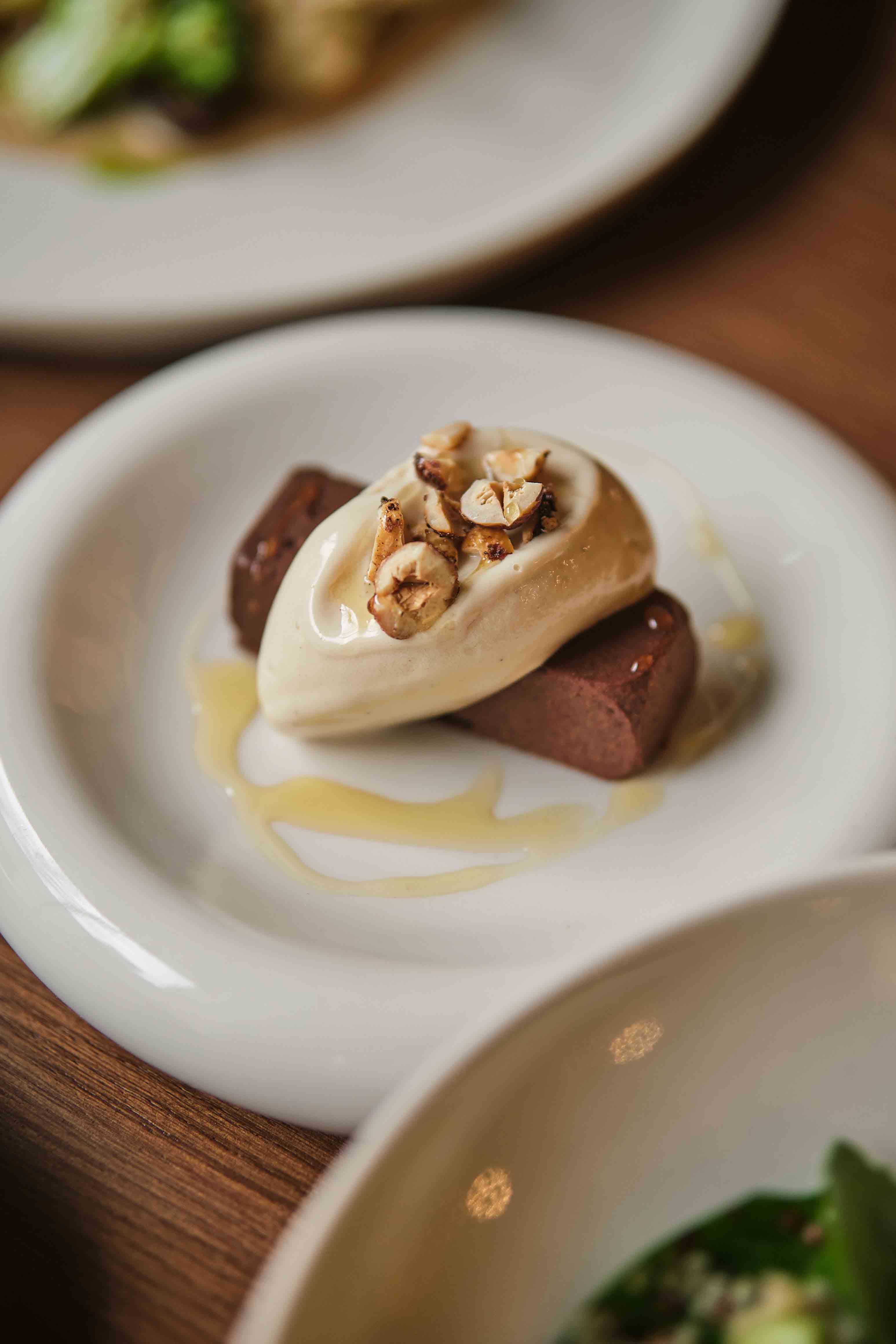 Шеф-повар Дмитрий Гусаров сделал ставку на одну из самых популярных закусок в ресторане — хумус. В рамках постного меню его будут подавать с оливковым маслом, семечками, орехами и хрустящим попкорном из нута. На горячее стоит попробовать крем-суп из тыквы с кокосовой пеной, фисташкой и тыквенными семечками и картофельные ньокки с опятами, лисичками, белыми грибами и мисо-пастой. И, конечно, не забываем про десерт. Шеф-кондитер Диана Китаева предложила веганский шоколадный трюфель и мармелад со вкусом маракуйи.
