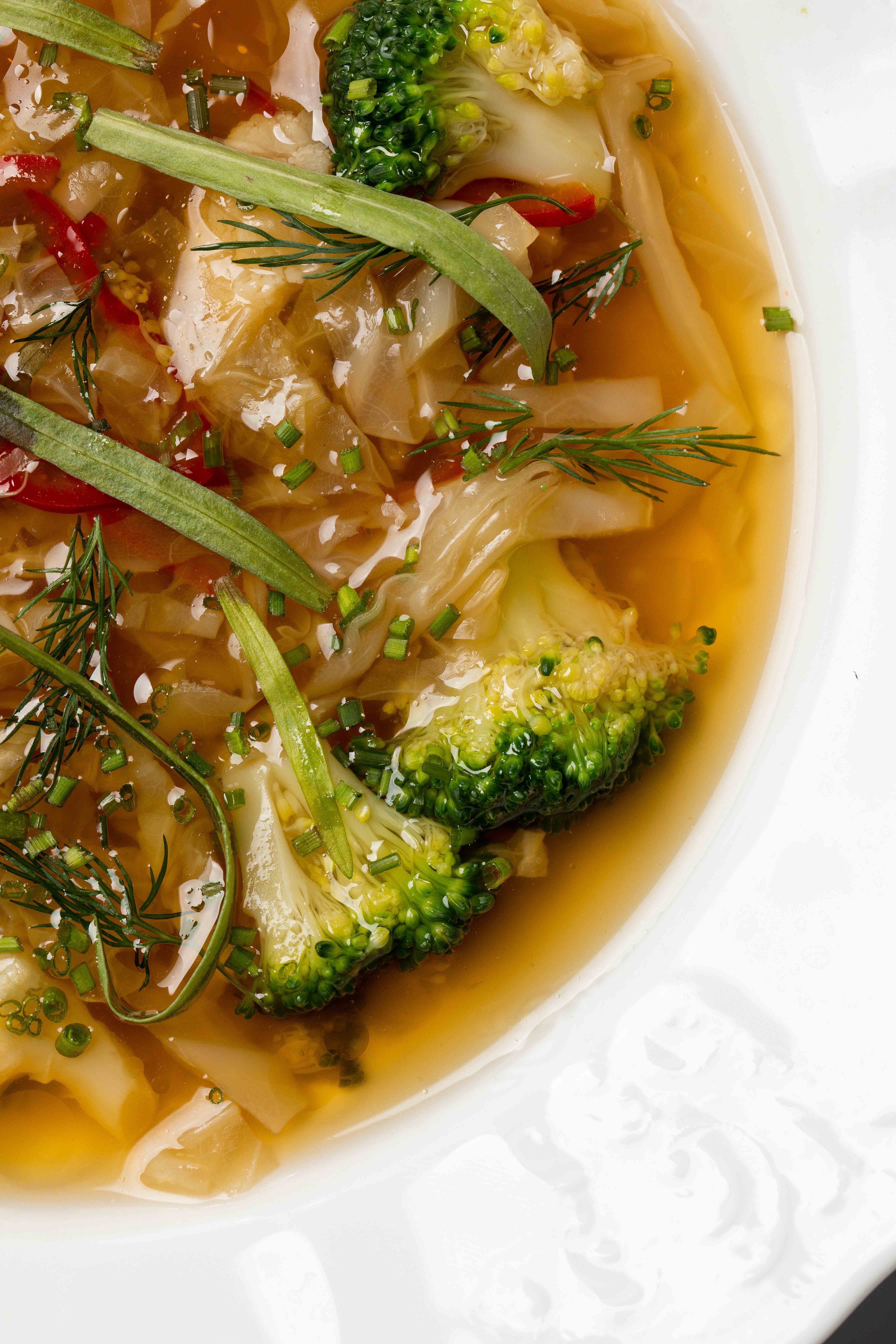 Щи с савойской капустой и печеный баклажан