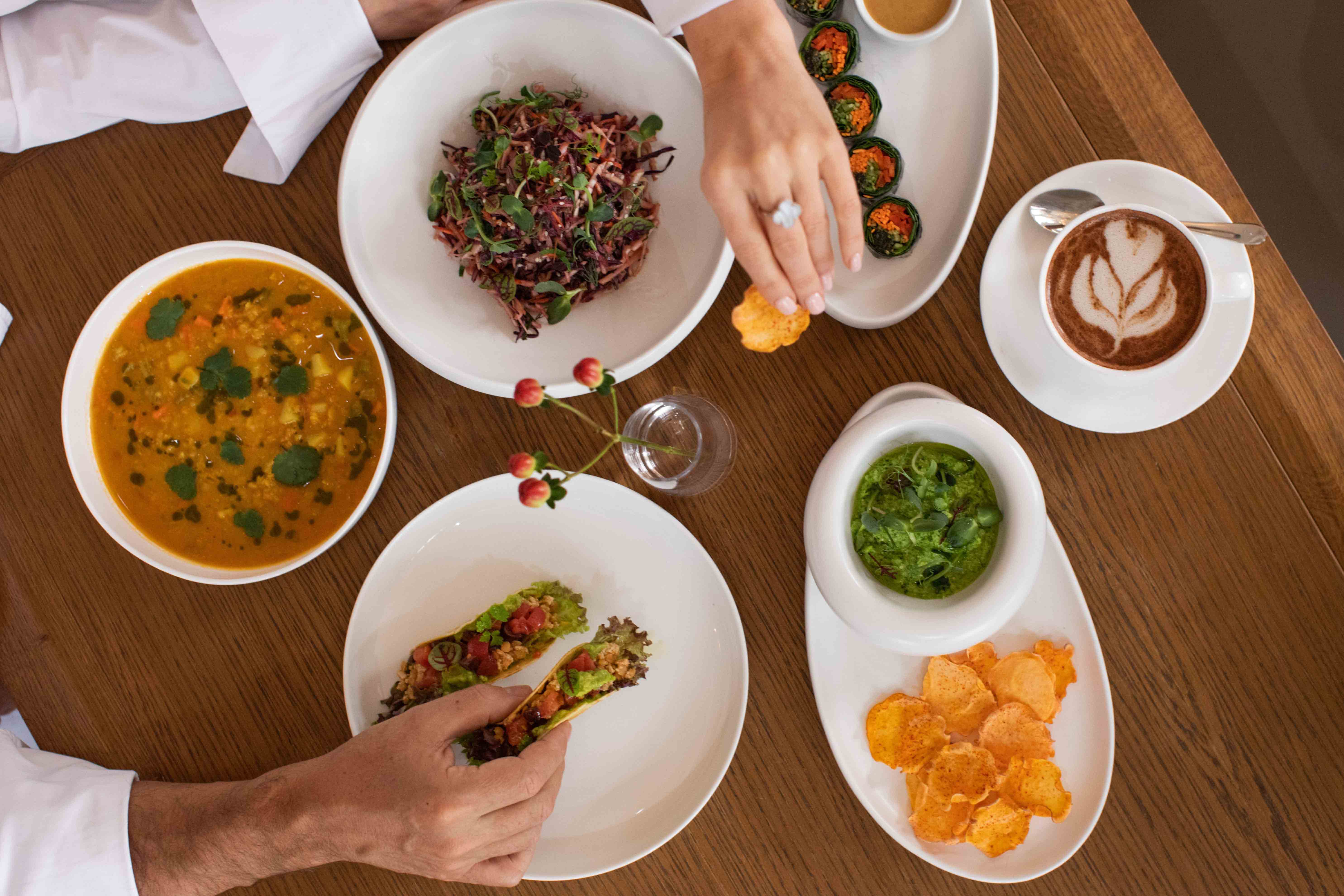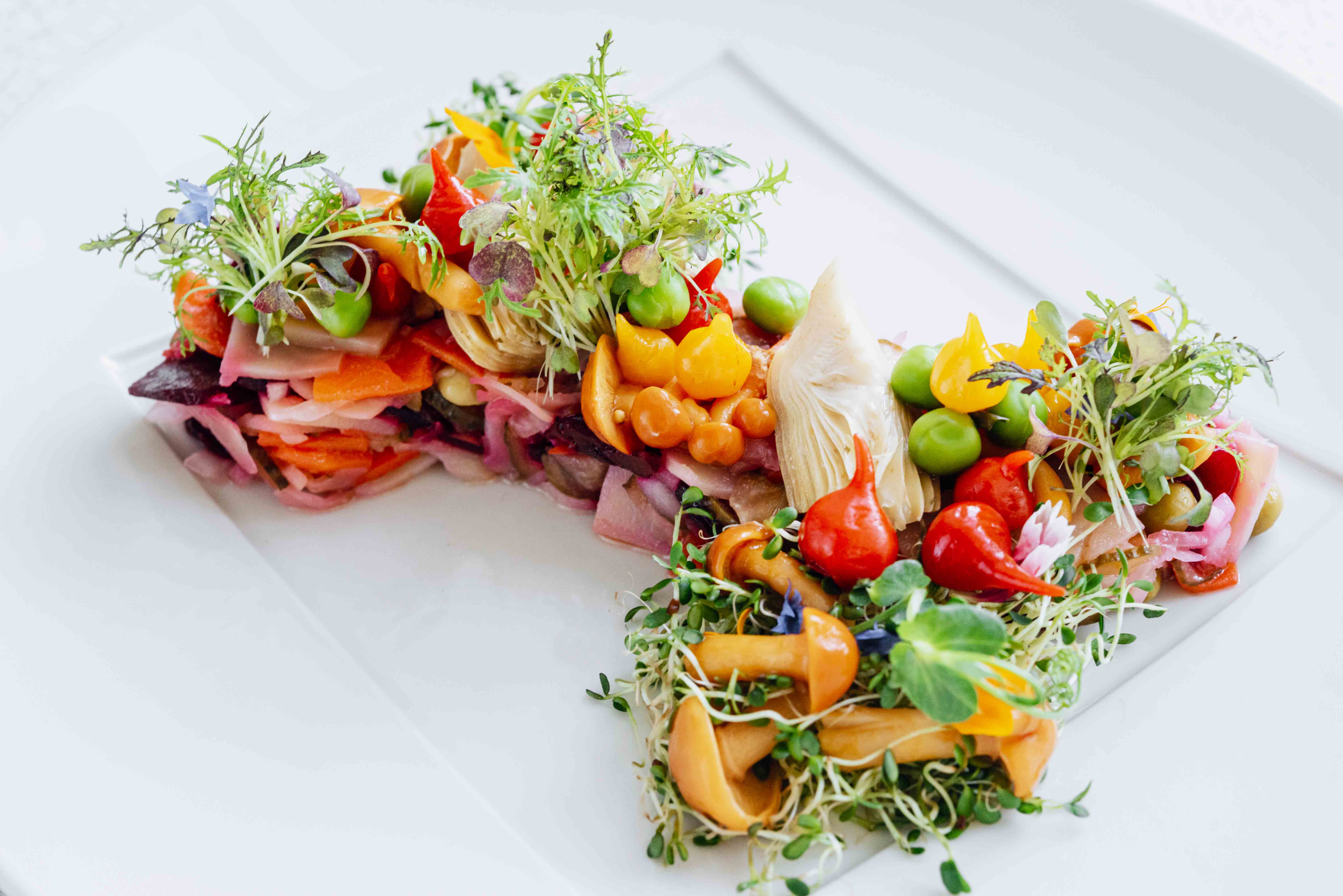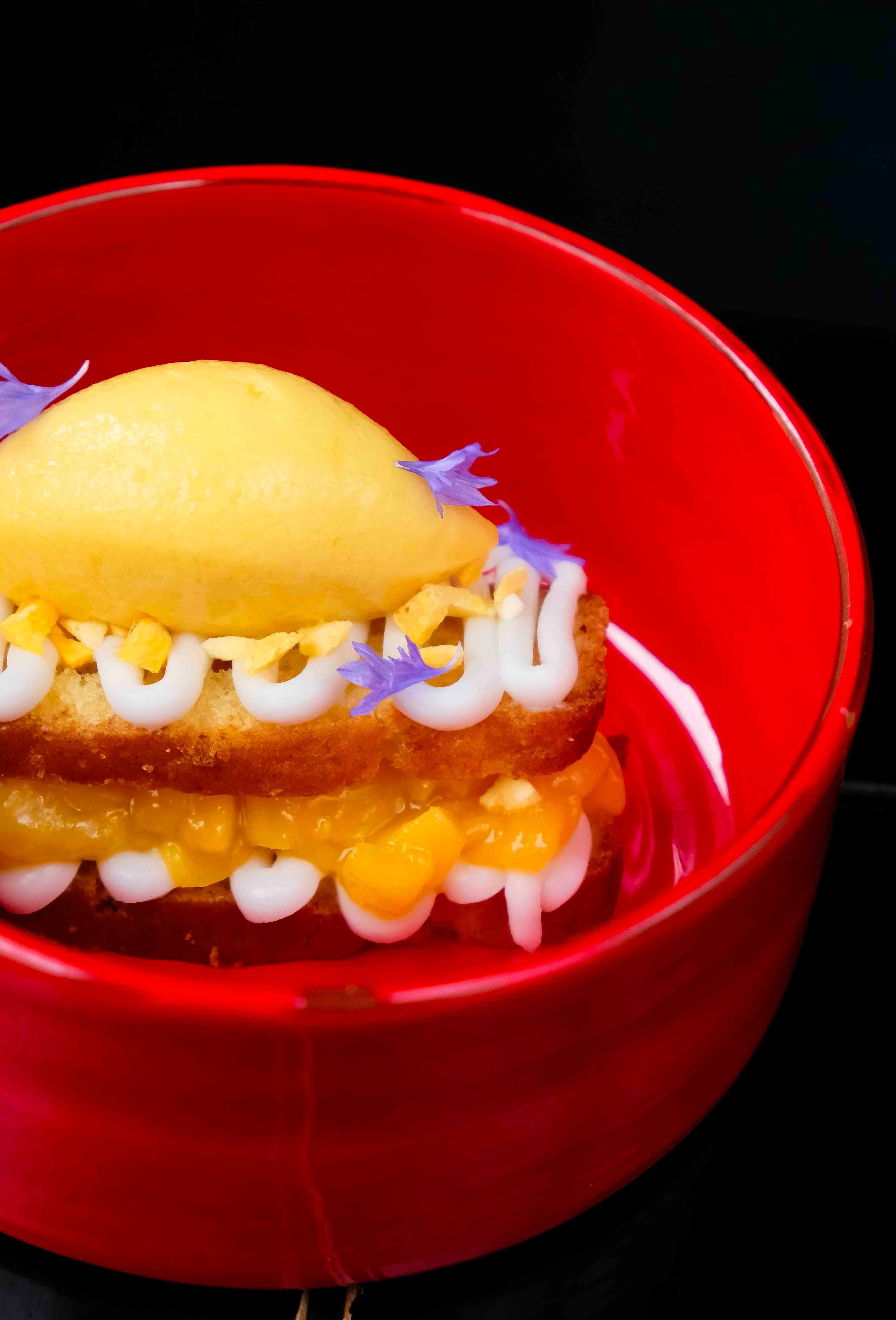 Шеф-повара Георгий Троян и Алексей Усов предлагают попробовать романо-мильфей — хрустящие листья свежего романо с гуакамоле, томатами конкассе, пеканом под бальзамическим кремом и оливковым маслом. Среди закусок также баклажан из печи с кокосовой сметаной в сочетании с миксом зелени, слайсами редиса и луком фри. В основу специального десерта, апельсинового бисквита с манго, лег апельсиновый фреш с кремом из кокосового молока и сорбетом манго-юдзу.