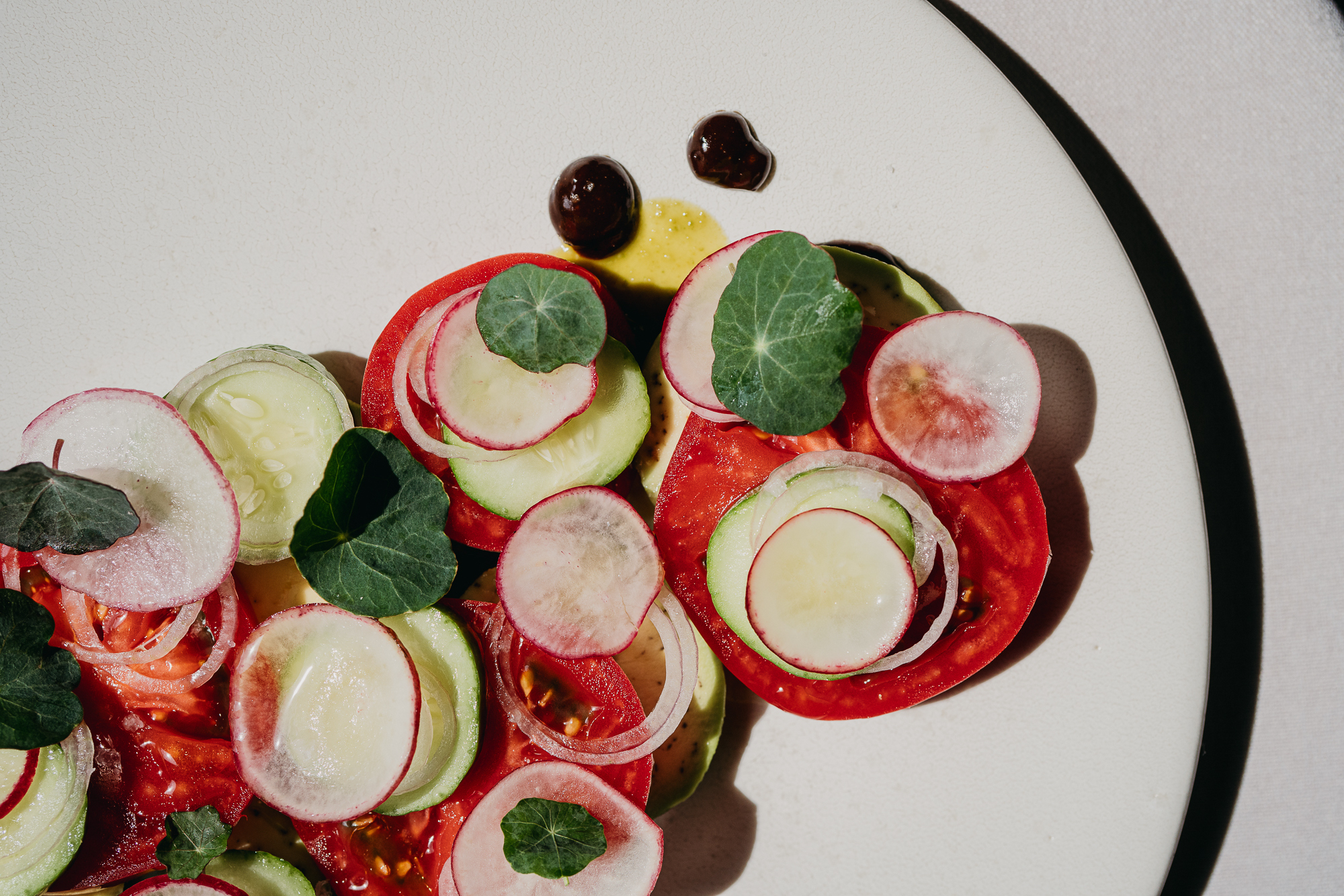 Бренд-шеф Евгений Цыганов и шеф-повар Эдуард Сороковиков уверены, что постное меню — это повод взглянуть по-новому на знакомые блюда. В качестве закусок предложили оливки из угольной печи, хумус из кешью с авокадо и огурцы в квасе с ферментированным виноградным листом и клюквой. На горячее — палтус с цветной капустой сразу в трех видах: свежие слайсы, пюре с кокосовым молоком и стейки в цитрусовой глазури.